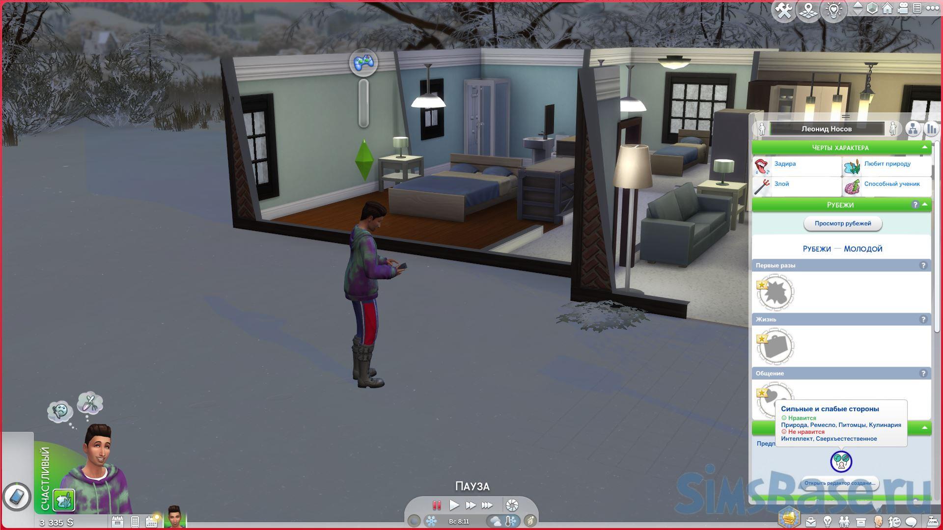 Сильный: развитие фитнеса, травничества, моторики (ребенок), горшка (малыш) и хорошего самочувствия (большой эффект). Быстрее выздоравливает от болезней и неудобных настроений. Преимущества в карьере: Гражданский дизайнер (малые эффекты), Защитник природы (малые эффекты).