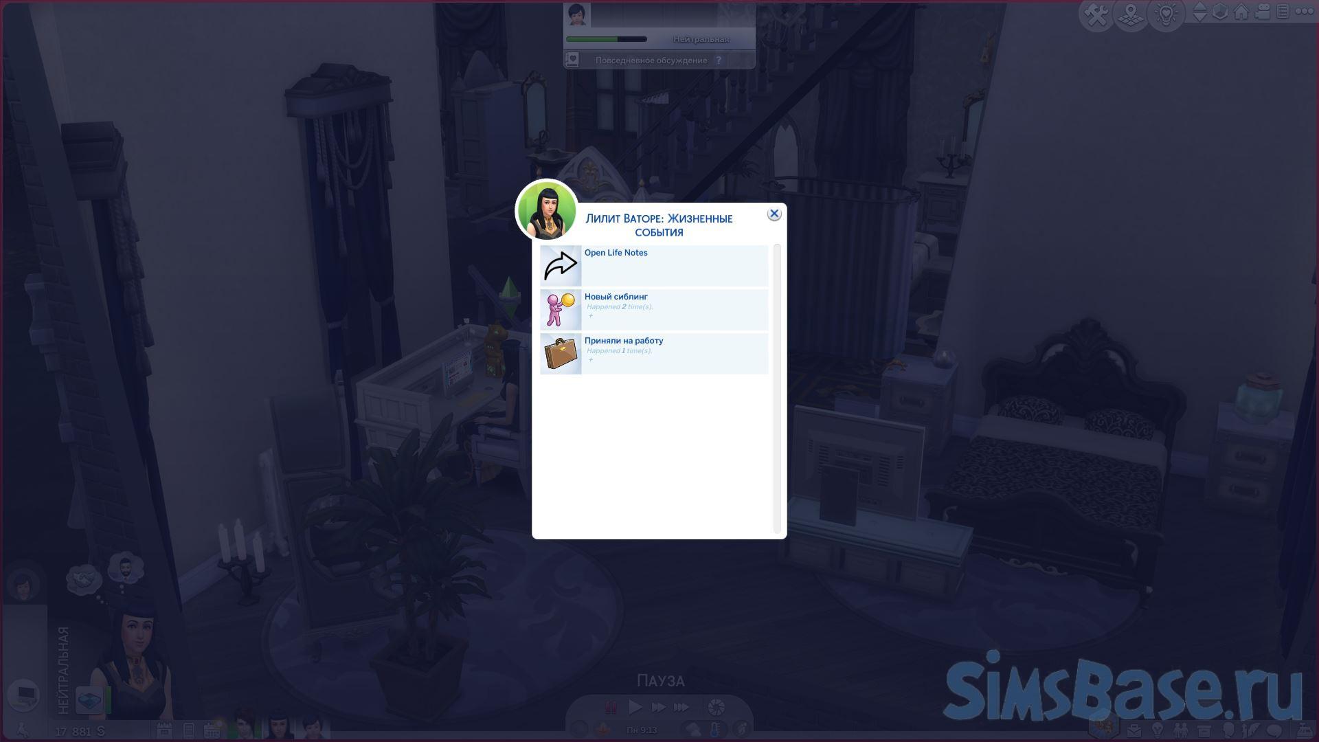 По нажатию на самого сима вам станет доступна панель, в которой вы можете просмотреть все воспоминания по порядку их появления. Например, переезд в другой город, отпуск, рождение детей, потеря друзей и близких, развод и расставания, свадьбы, становление оккультным персонажем, первый поцелуй, первый секс и многое другое! Если есть другие моды автора, сим также будет получать воспоминания от действий этих модов.