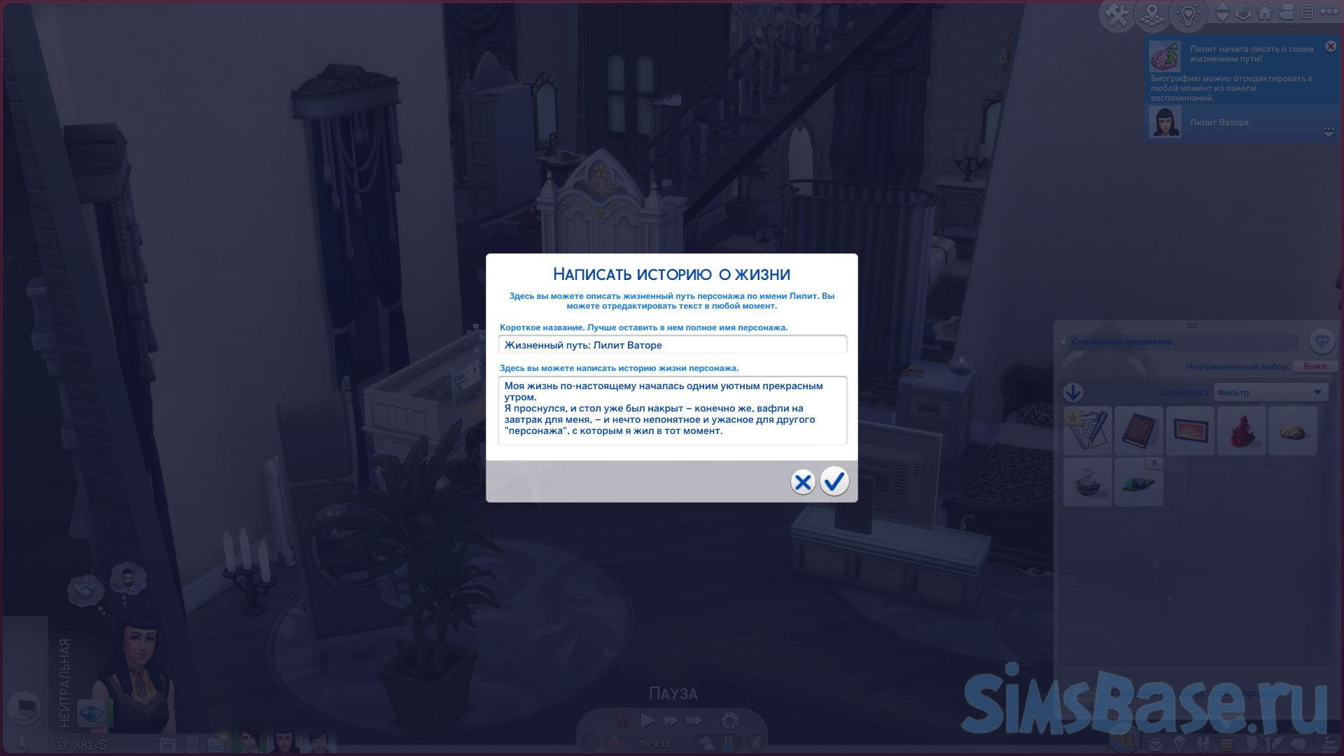 Вы можете написать симу его биографию! Если у вашего персонажа есть воспоминания, то откройте панель и найдите пункт меню «Открыть историю жизни»