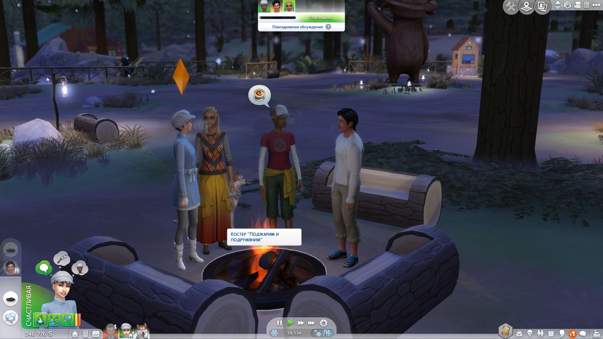 Встретились однажды несколько симов-знакомых и решили обсудить всякое-разное. Да не тут-то и было. Один начал куда-то уходить, другой отправился к ближайшей лавке и начал оттуда кричать и рассказывать, чтобы собеседники его услышали, а третий, и подавно, решил топтаться то на одном месте, то на другом. Знакомая ситуация. Не часто возникает в игре, но бывает.
