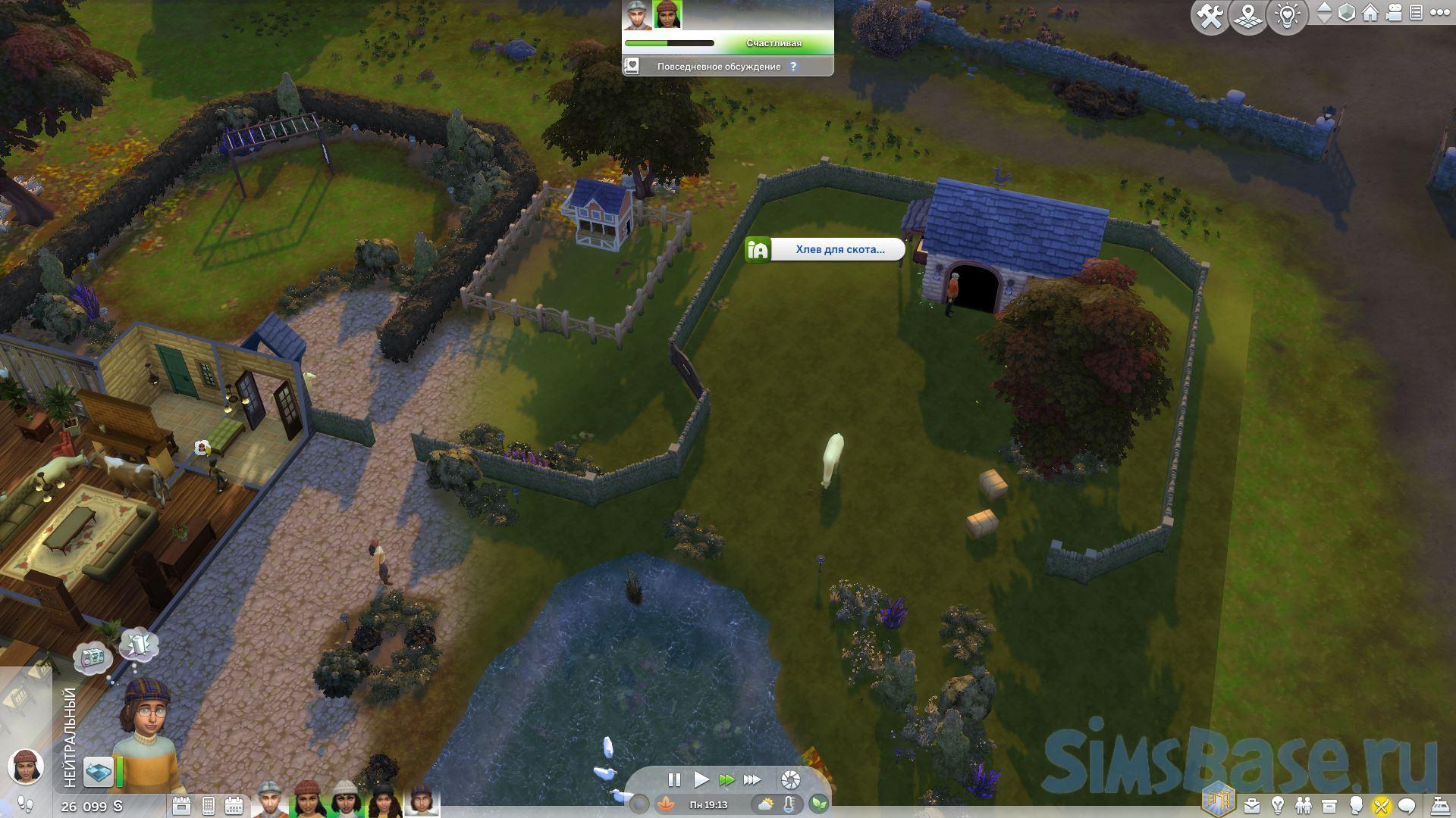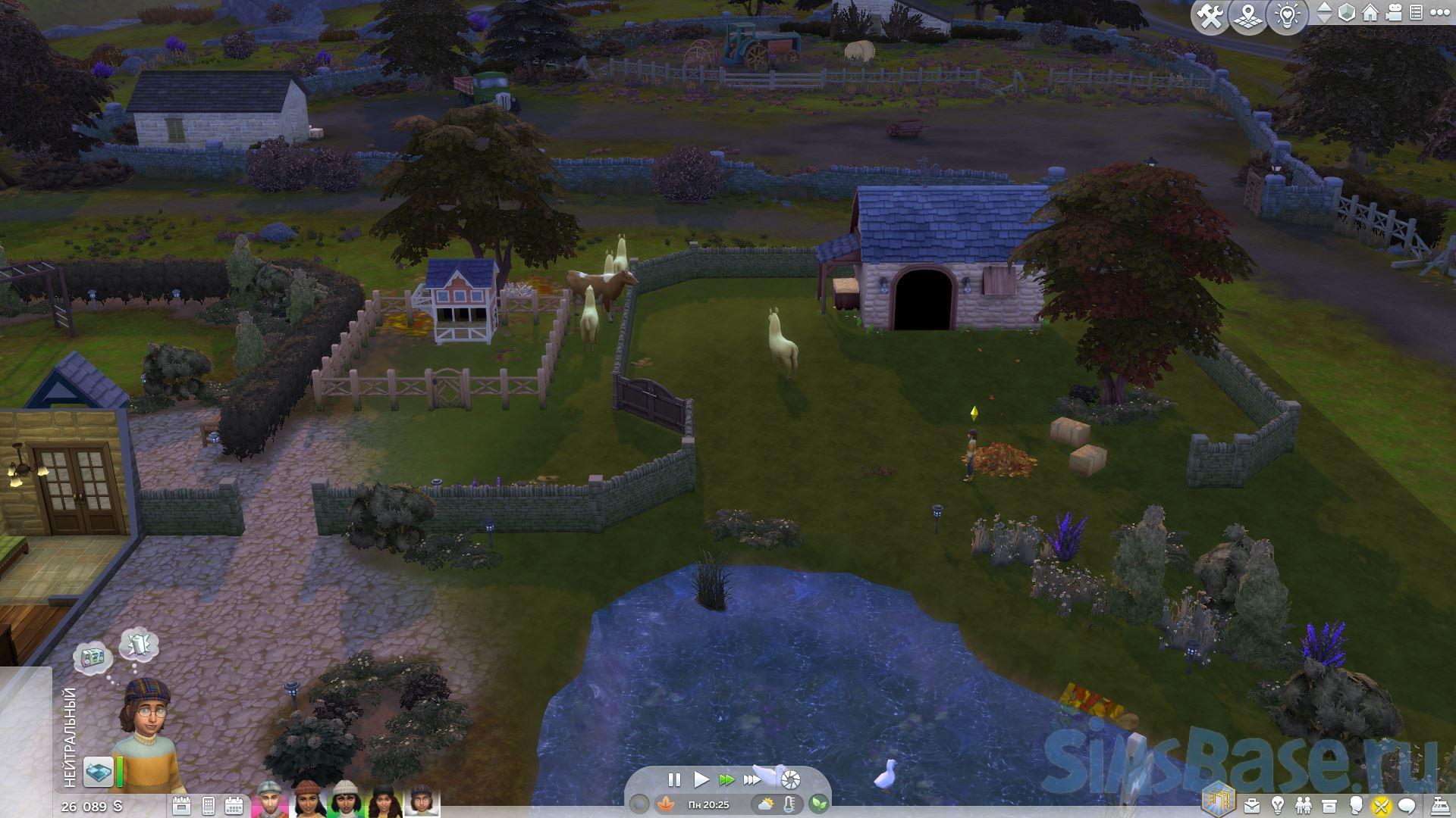 Коровы и ламы требуют того же ухода, что и раньше, однако они начнут устраивать большой беспорядок. Коровьи лепешки, кучи мусора, грязевые лужи нужно будет ежедневно сгребать и убирать, и они будут размножаться быстрее, если сами животные будут долго оставаться грязными. Используйте опцию «Чистить хлев», щелкнув по земле , чтобы ваш сим убрал все, что сможет найти.