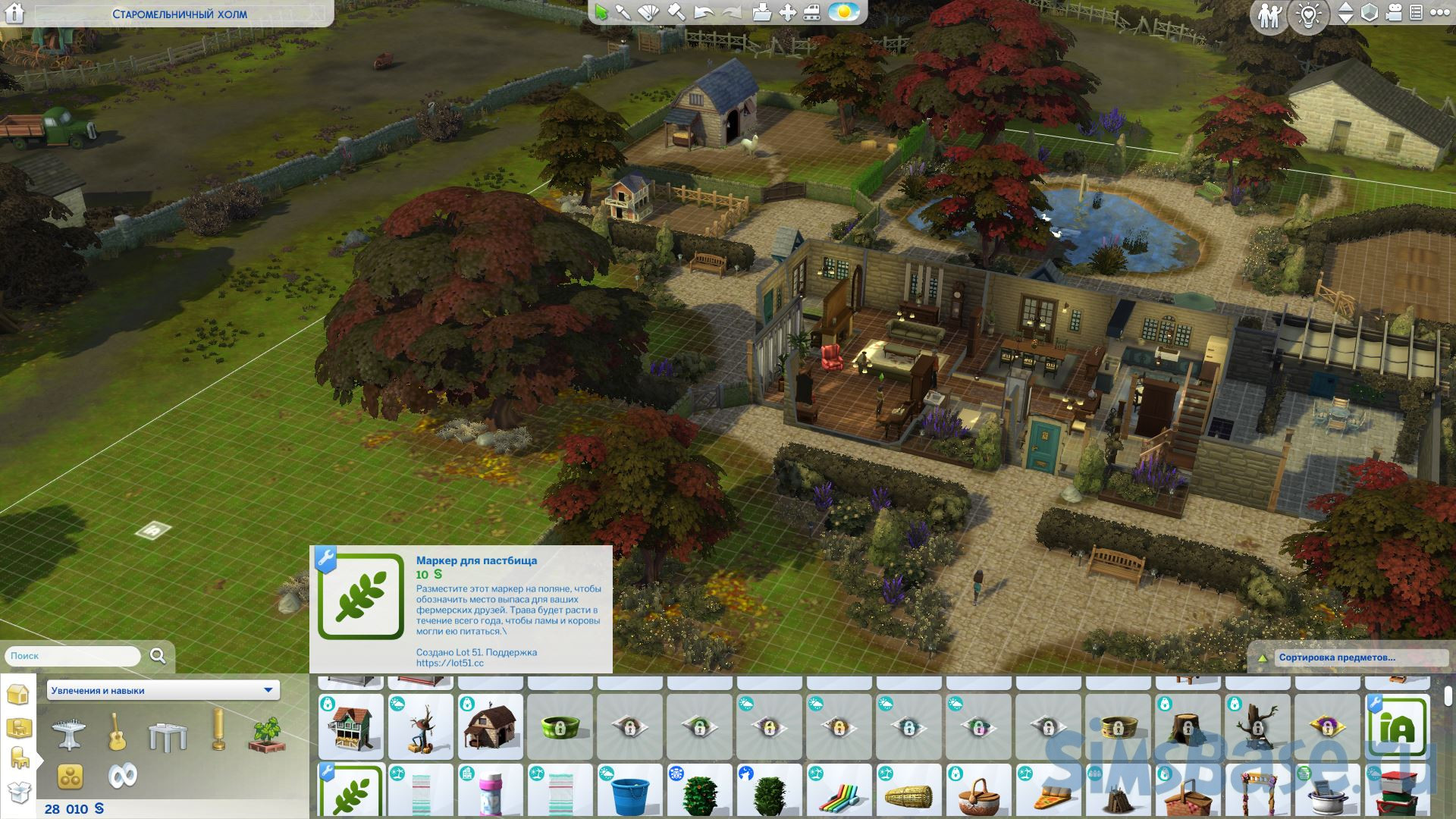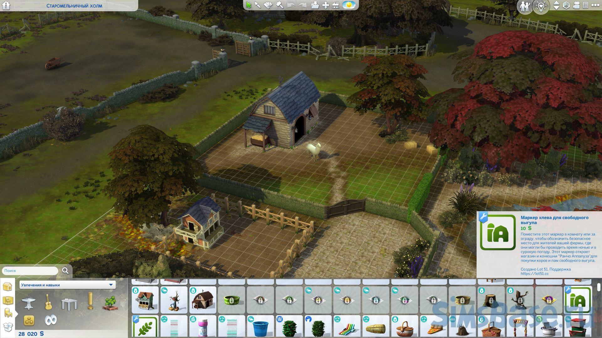 Найдите маркер хлева и маркер пастбища в категории «Активный отдых » в режиме строительства, чтобы обозначить две зоны для отдыха ваших животных. Как только вы вернетесь в режим жизни , маркеры исчезнут.