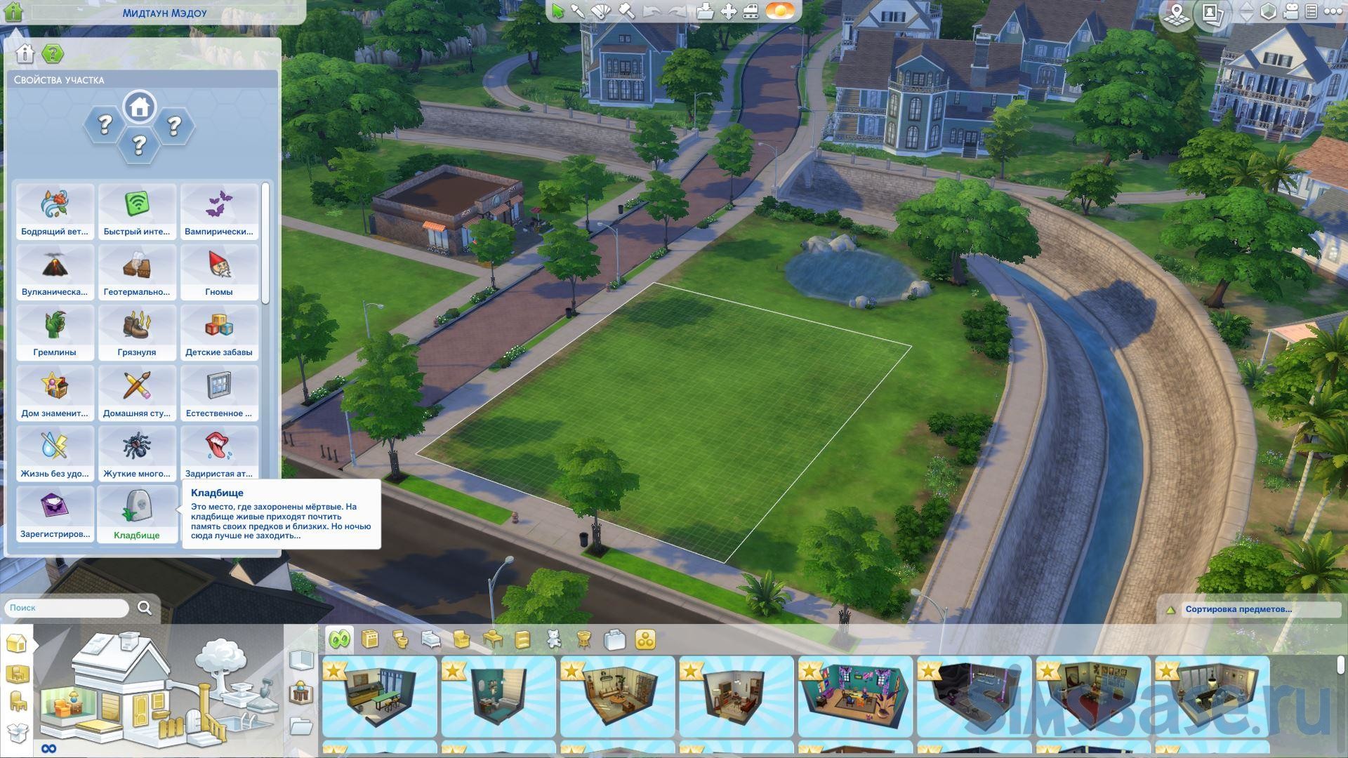 Необычное свойство для участков в Sims 4, но, тем не менее, оно насыщенное, со множеством баффов, мудлетов и активностей. Согласитесь, но иногда жуткого местечка типа Кладбища в игре не хватало. Чисто визуально создать можно, но чтобы придать ему еще и атмосферность – такого не было.