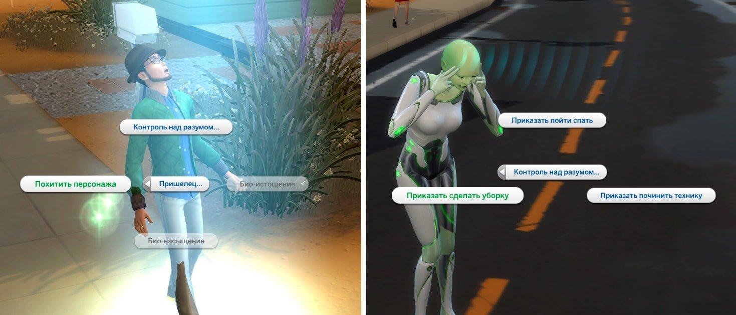 Все перечисленные способности появляются в меню взаимодействия с другими персонажами, во вкладке “Пришелец”.