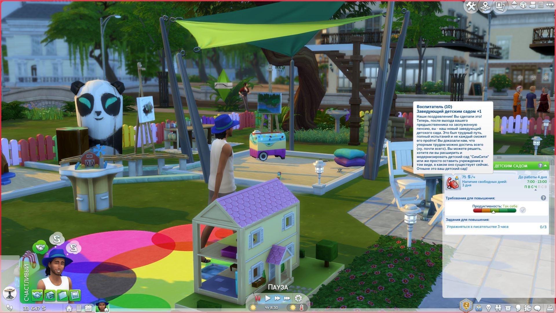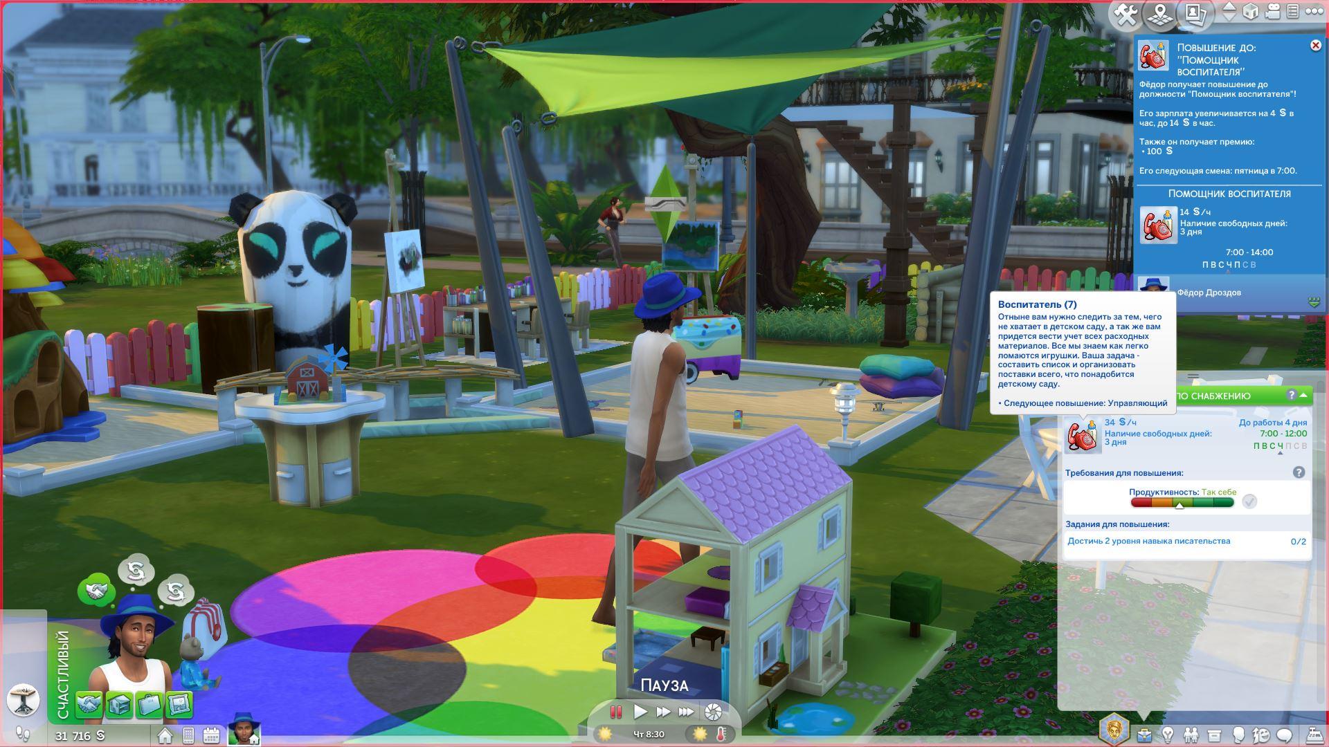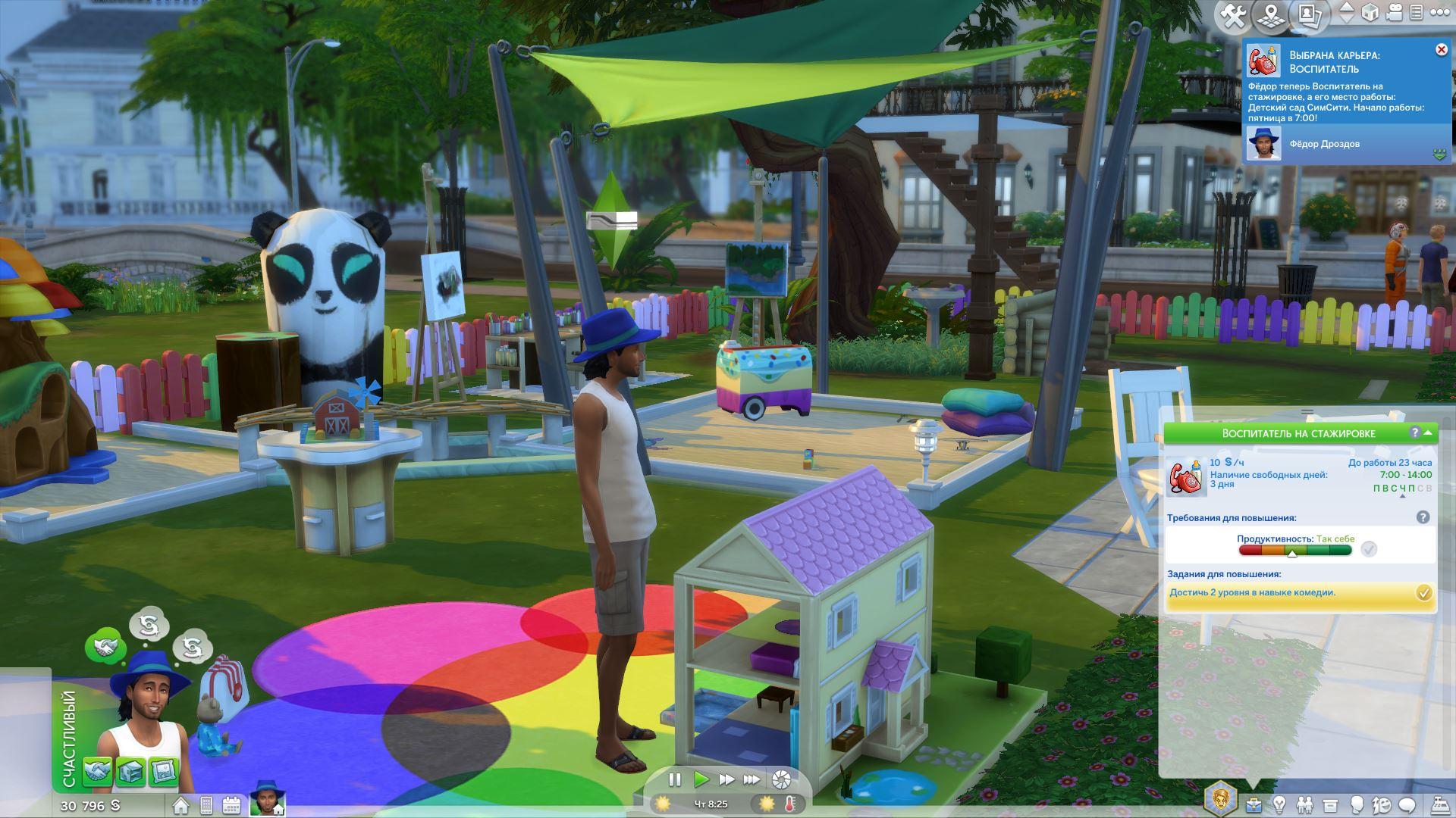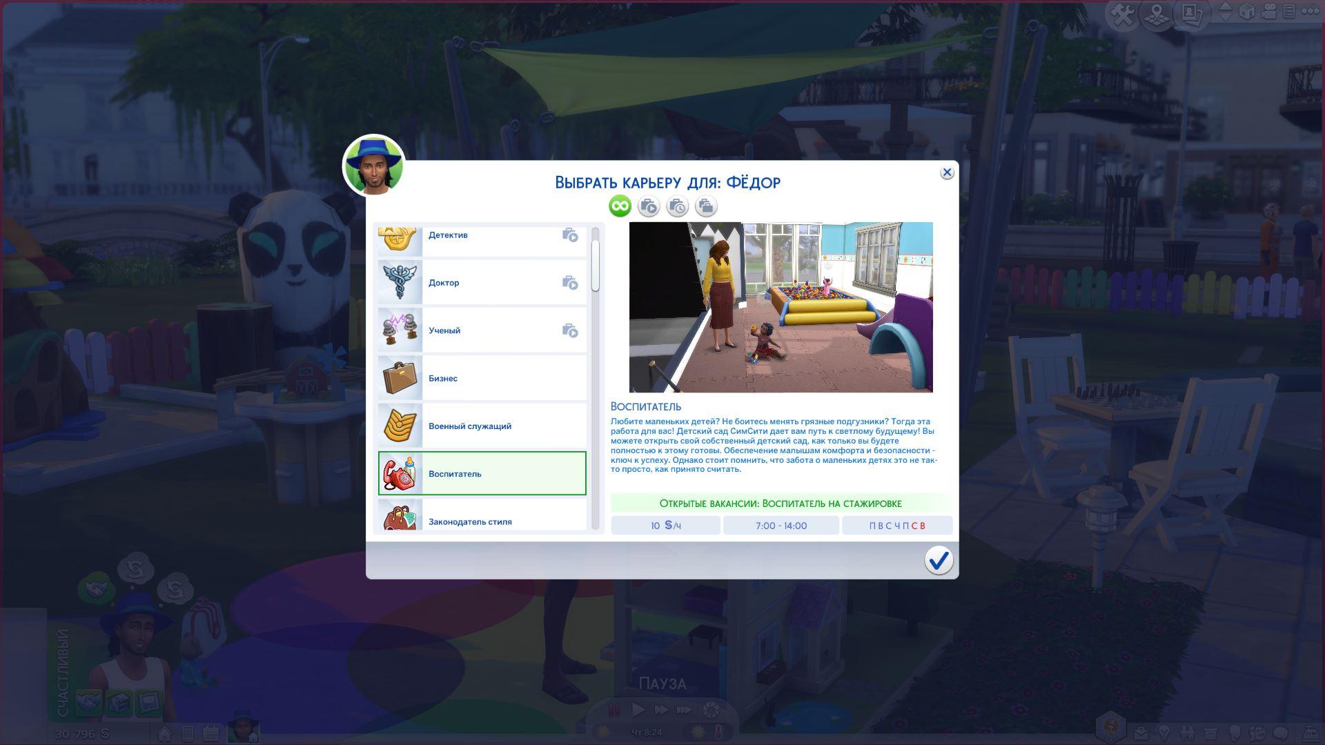 Данный мод добавляет в Sims 4 новую карьеру – Воспитатель в детском саду. По факту, это обычная «кроличья нора» и даже какого-либо разветвления нет. В финале на 10 уровне вы становитесь заведующим детского сада . НО! В течение этих 10 уровней вашему симу предстоит изучить Писательство, Рисование, Игру на скрипке, Обаяние, Комедию.