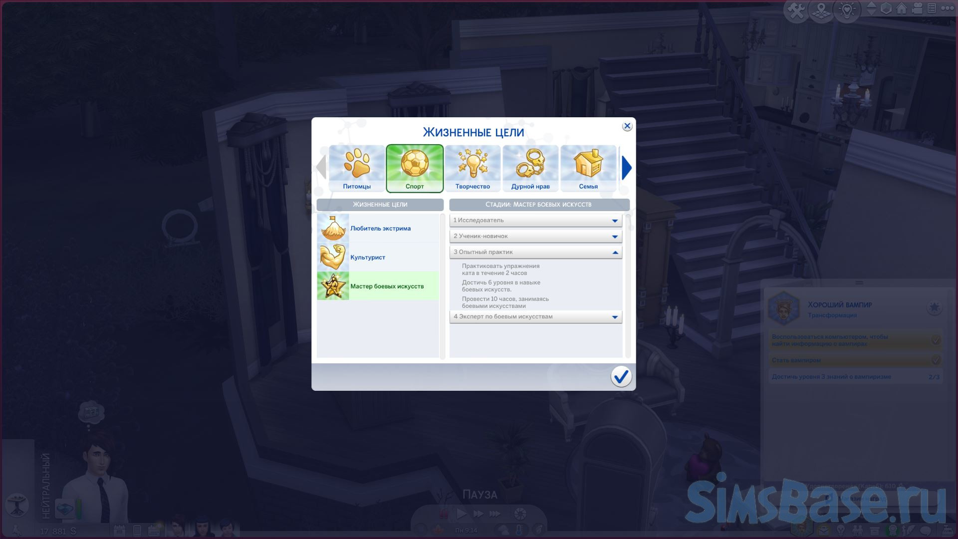 Новая цель в жизни – Мастер боевых искусств. Её завершение присуждает симу звание «Мастер боевых искусств». Симы-мастера награждаются чертой характера Просветленный, которая дает вашему симу возможность направлять свою Ци, чтобы замедлить свои потребности, быстрее повысить свои навыки или отсрочить старение. Вам нужно будет накопить достаточно Ци, чтобы эти взаимодействия появились.