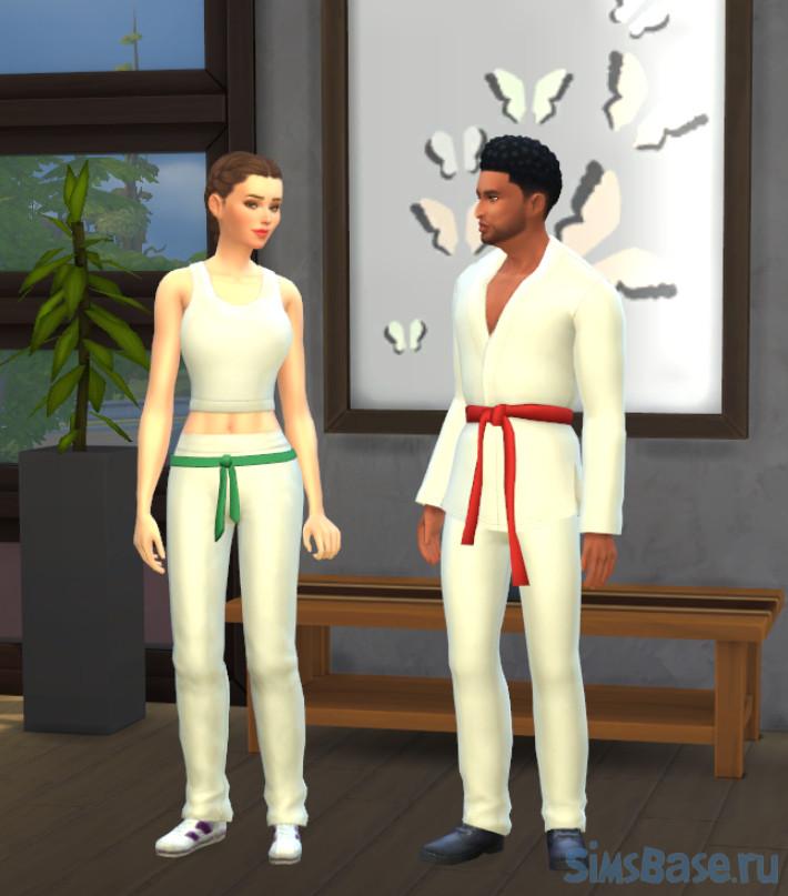 Как повседневные, так и формальные ги можно найти в разделе спортивной одежды , но формальные ги необходимо сначала разблокировать, прежде чем они появятся в CAS. Симы будут самостоятельно носить формальные ги в додзё.
