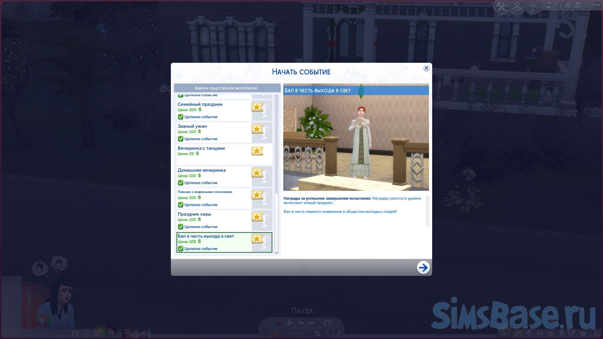 Бал Выход в свет доступен симам при их вступлении в общество . Это не заменяет визит к королеве, но может стать другим способом отпраздновать событие !