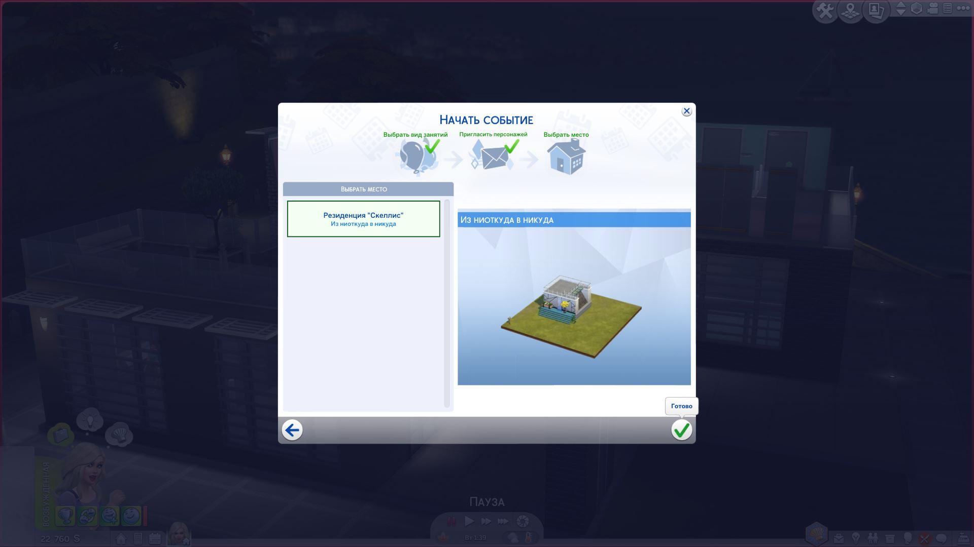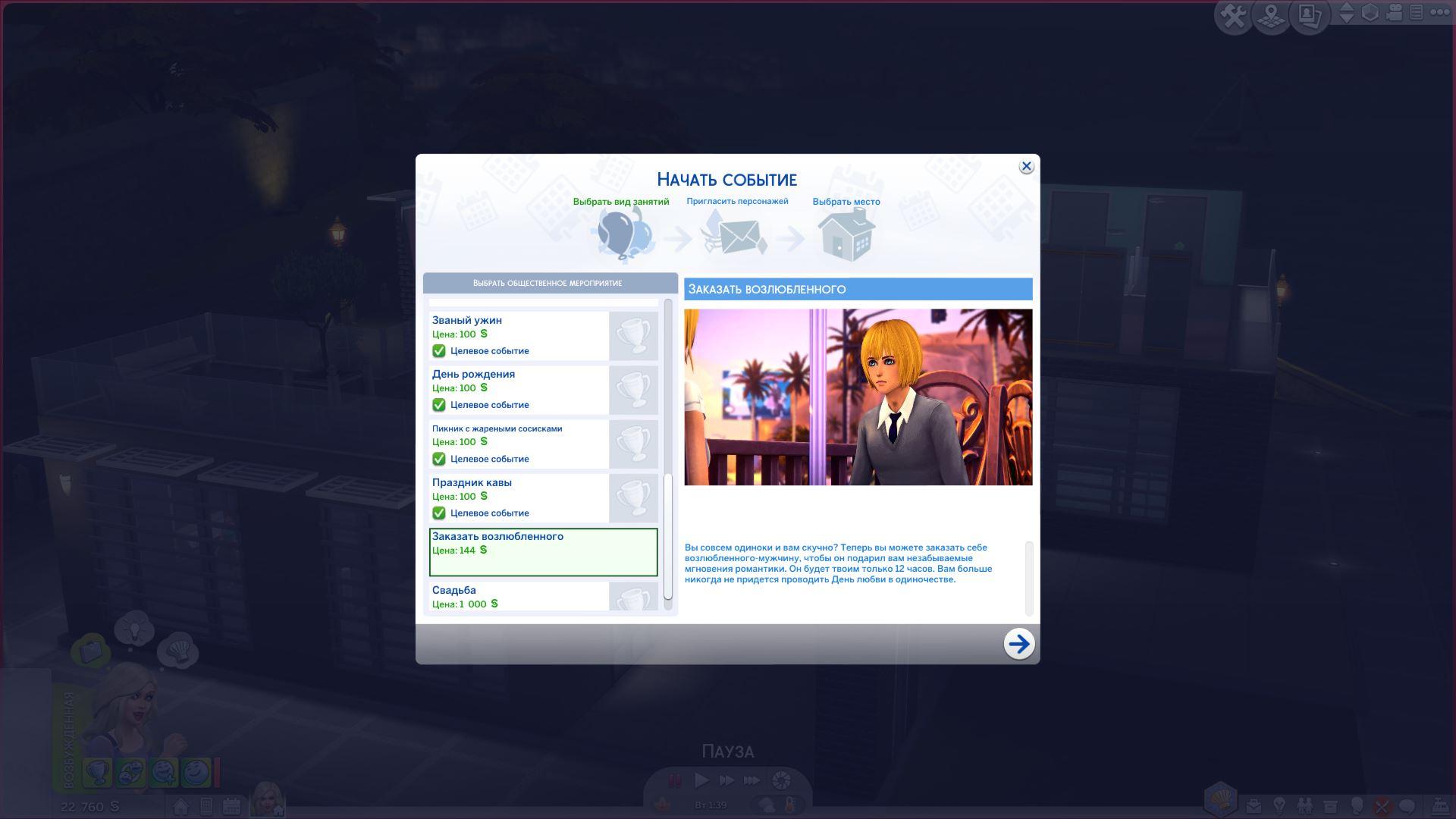 Работает мод как обычное планируемое через телефон мероприятие, после чего остается выбрать только место – ваш жилой лот. Всё. Спустя время сим придет к вам и будет рядом ровно 12 часов. А вот куда вы с ним пойдете, где будете сидеть и общаться, или заниматься еще чем-то интимным – только ваши идеи для вашего сюжета игры!