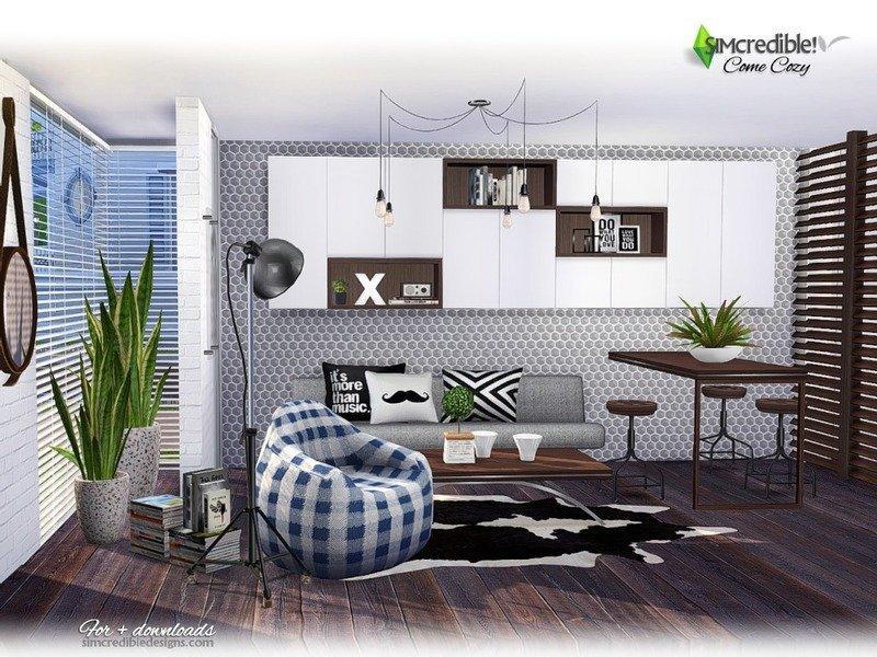 Эта уютная гостиная создана для симов, которые любят проводить много времени за общением с друзьями или хорошо расслабиться после тяжелого рабочего дня.