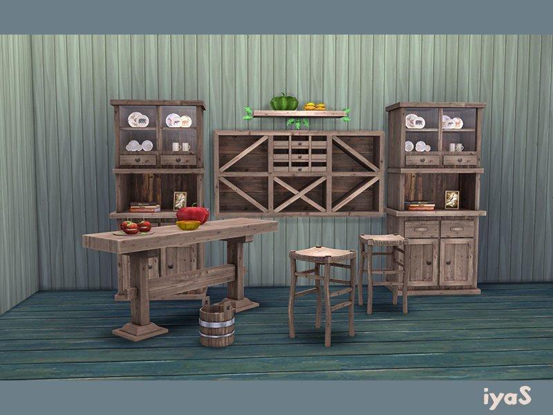 Набор деревянной мебели в деревенском стиле. Легкий эффект ветхости и ненадежности добавляет своего шарма и придает набору более домашний вид.