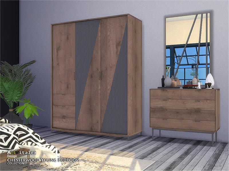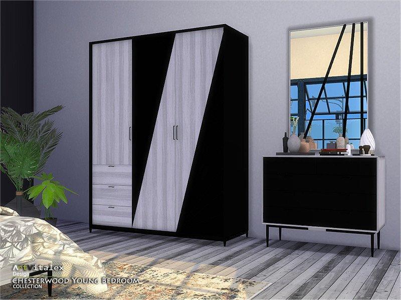 В наборе: односпальная кровать, шкаф, полки, рабочий стол, прикроватный столик, зеркало, стул, коврик, одяло, подушки