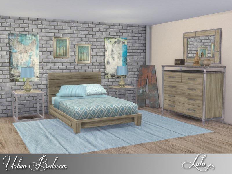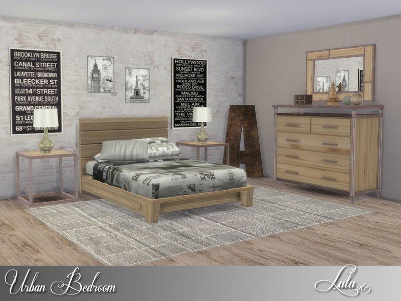 Набор мебели для создания очаровательной спальни в стиле городской лофт. Состаренное дерево и немного ржавый металл позволят вам создать по настоящему уютный чердачный уголок. В наборе: Большая кровать, декоративные подушки, комод, прикроватный столик, декорация “А”, зеркало, ковер, настольная лампа, настенный арт в двух вариантах. Автор: Lulu265 Оригинальное название: Urban Bedroom