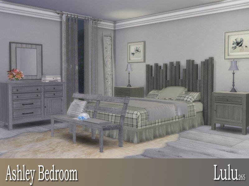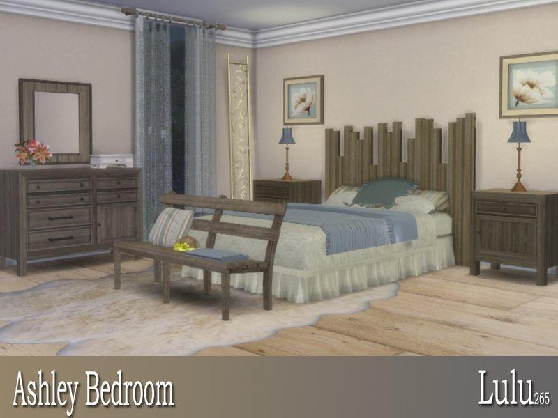 В наборе: картина, кровать с отдельным пледом и подушками, занавески, декоративный свернутый плед, стоячие подушки, декоративная шляпка с цветами, комод, двухместная скамья со спинкой, зеркало, прикроватная тумбочка, вертикальная напольная декорация с кружевом, настольная лампа.
