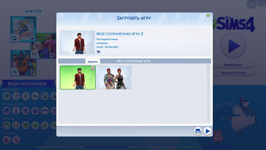 Жмите и переходите в раздел сохранок. Там можно выбрать ваше последнее сохранение и нажать на крестик. Игра попросит подтвердить удаление.