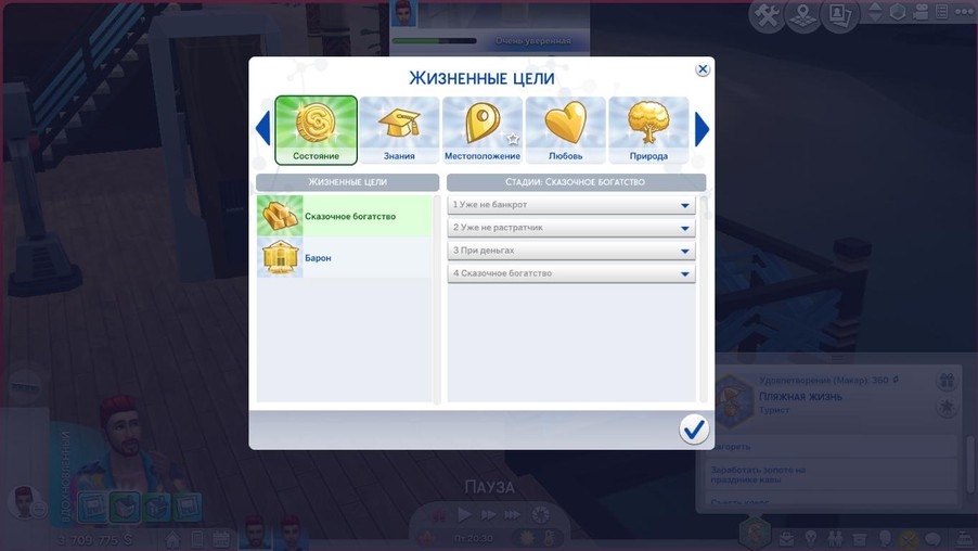 Чтобы ускорить процесс повышения уровня карьеры выполните жизненную цель «Состояние». В качестве награды вы получите черту характера «Делец». С ней вы сможете больше зарабатывать и быстро получать повышения.