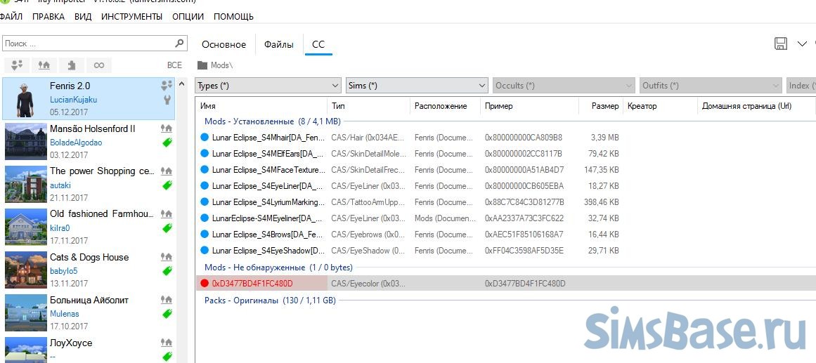 Таким образом, благодаря этой программе вы получаете название сломанного СС, можете либо сами его поискать в интернете и попробовать обновить, или удалить только его из папки Mods.