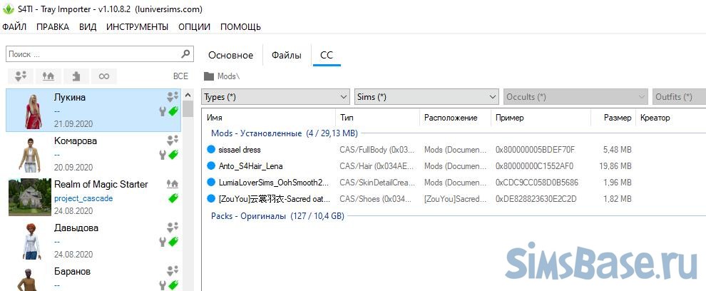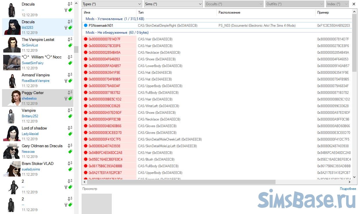 Запустите Sims 4 Tray Importer и в левом меню найдите своего сломанного сима.