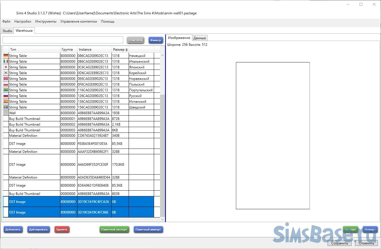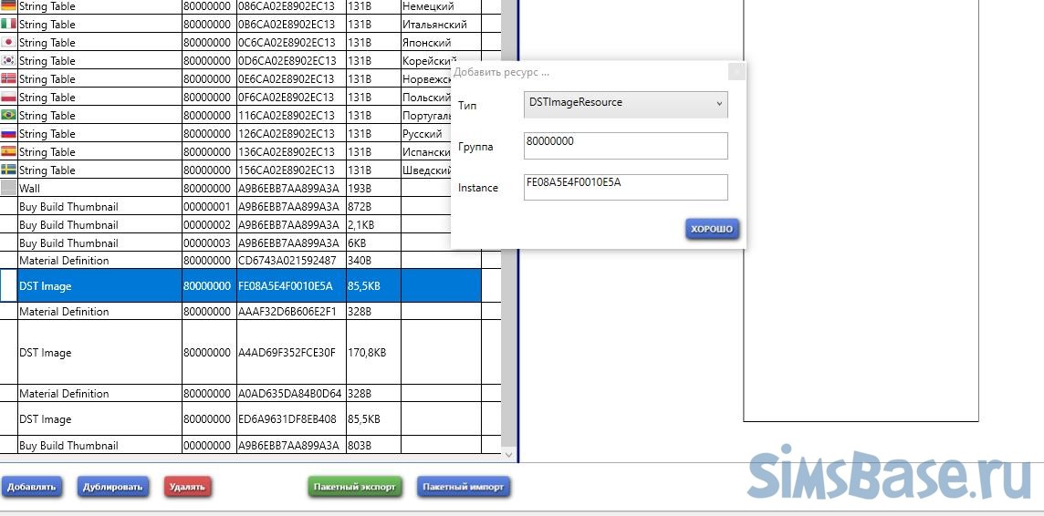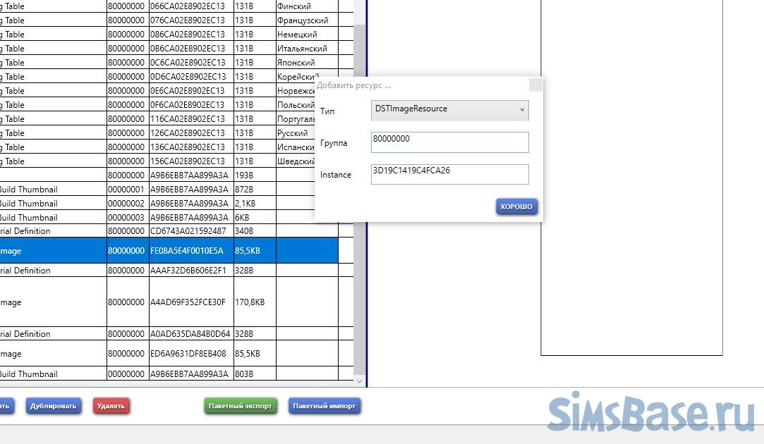Выберите любой DST Image и нажмите Дублировать. Параметр Instance – уникальный. Это своего рода запись объекта в системе. Просто так скопировать его нельзя. Его нужно создать, только тогда, можно добавлять новые объекты в игру. Благо в S4S есть Инструмент Hash Generator.