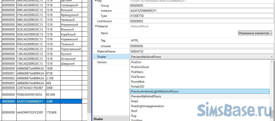 Переходим на вкладку WareHouse и в конце списка слева находим Material Definition. Справа в Данных можно увидеть раздел Shader. Это ниспадающий список, поэтому буквально над существующим значением есть еще одно, нужное нам – PreviewAmbientLightWallsAndFloor – просмотр рассеянного света.