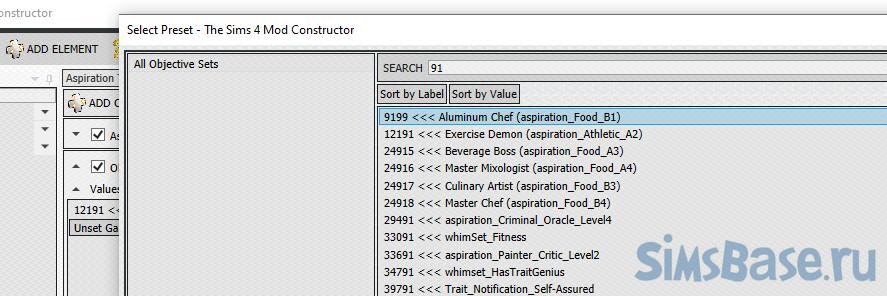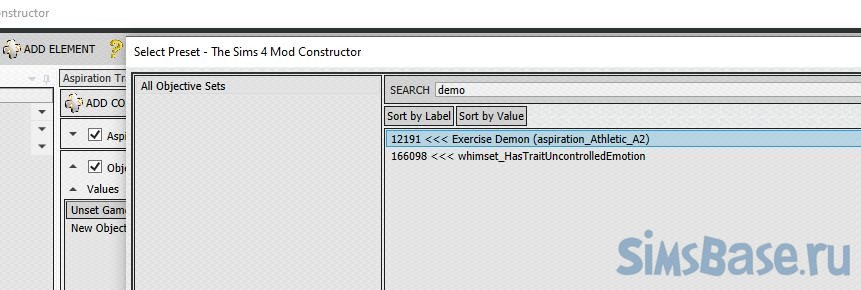 Переходим к Objective Sets (настройке задач). Мы решили, что подавать пример другим сим будет с помощью Фитнеса и Кулинарии. В игре уже есть ЖЦ Культурист и Шеф-повар , так что ими и воспользуемся.