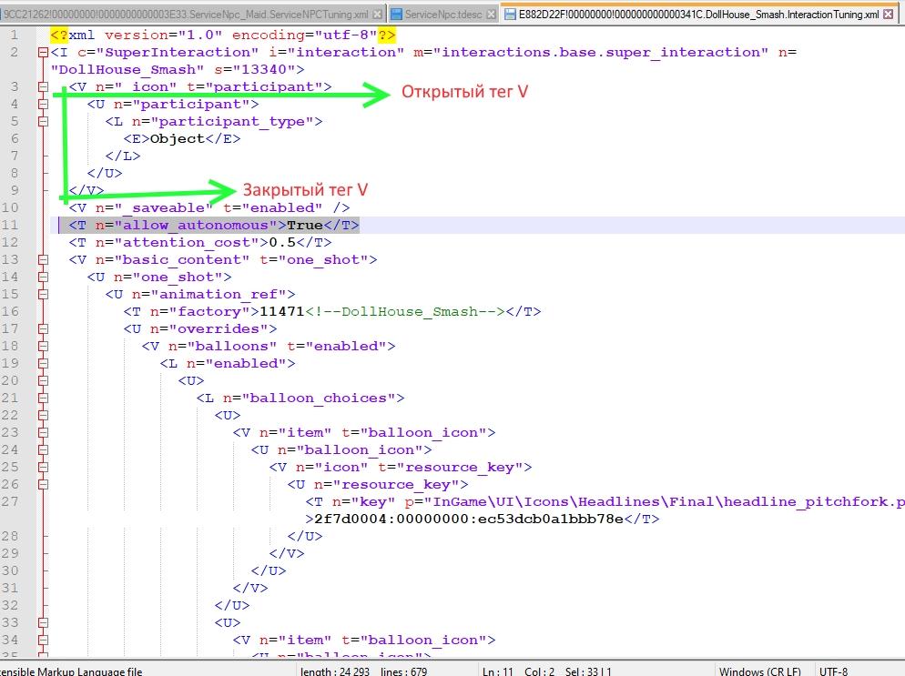 Находим нужный нам файл XML Dollhouse Smash и открываем его в Notepad ++.