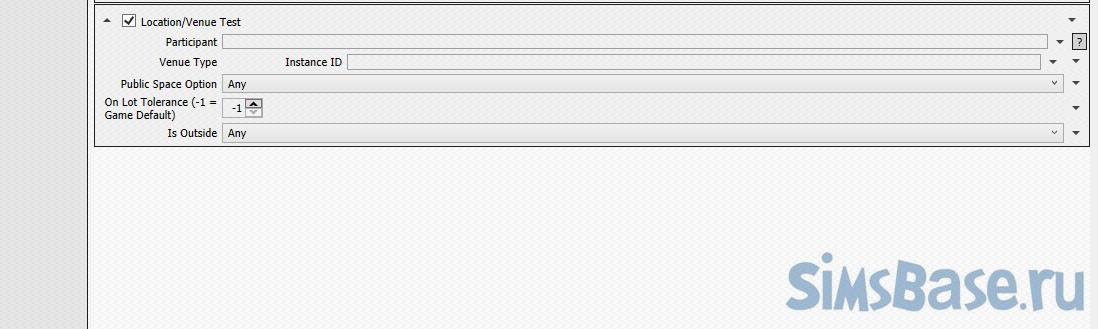 Для параметра Venue Type (Тип события) нужно усыновить Inside (внутри), что логично, ибо как только сим придет в Ночной клуб, он и получит бафф, а не у себя дома или в кафе. Нажимаем на стрелочке, выбираем Select Preset. В поиске для Ночного клуба один вариант, его и выбираем.