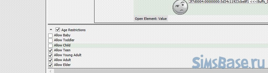 Теперь переключаемся на основную вкладку всей черты характера, и пришло время выбрать возраст симов для этой черты.