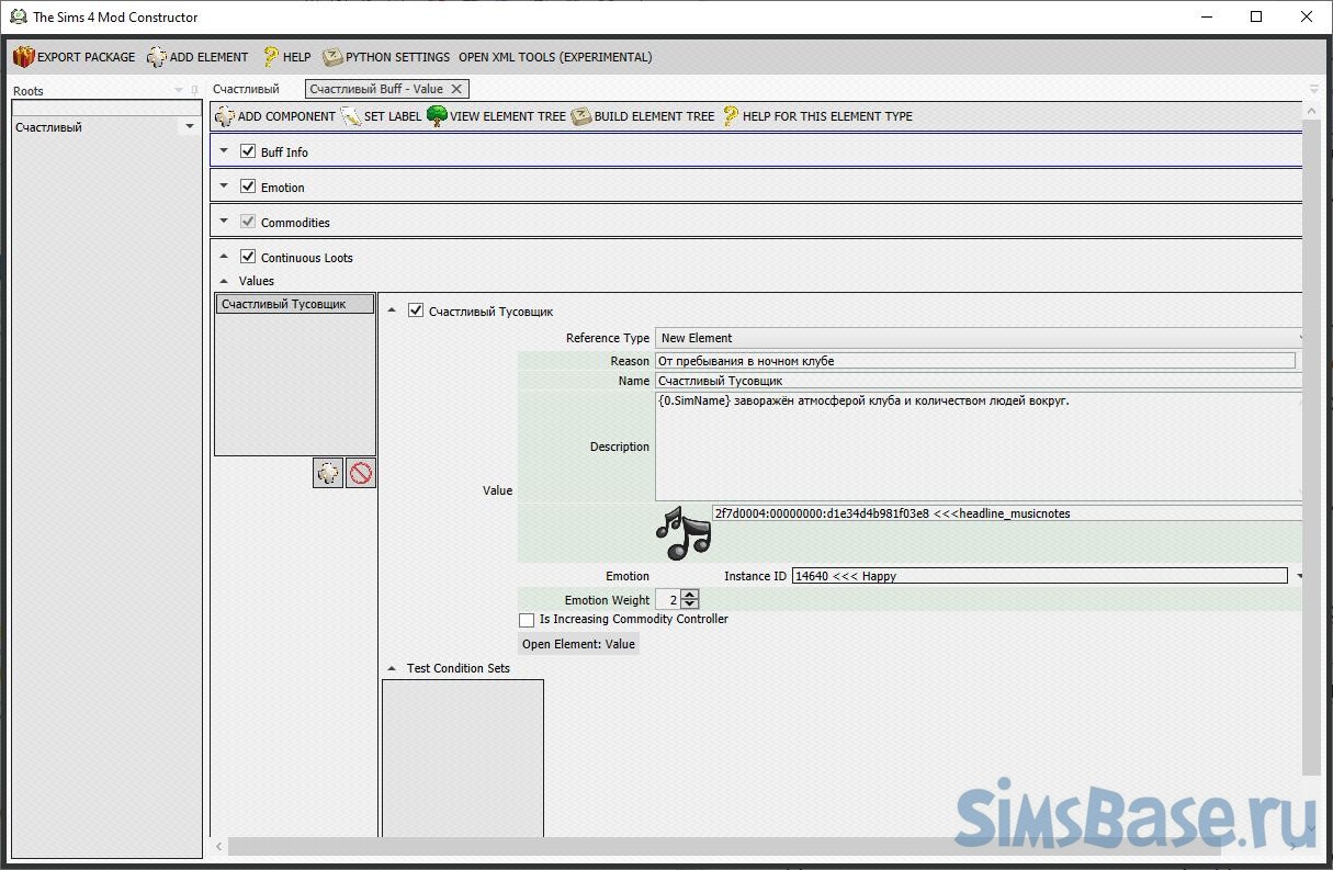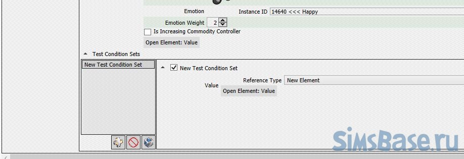 Добавляем параметр Test Condition Sets (плюсик), т.е. условия, при которых будет возникать этот новый бафф. И снова открываем Open Element: Value.
