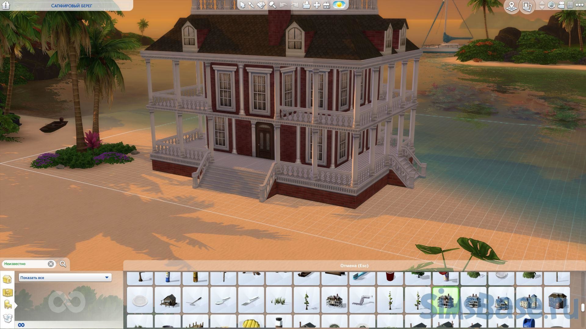 Далее, вам предстоит в поле поиска (слева) ввести слово «Неизвестно». Ранее использовалось слово «Отладка». Теперь уже в течение нескольких лет оно изменилось на «Неизвестно». В результате отобразятся все нужные предметы, и вы сможете найти подходящие здания, причалы, строения, дома, особняки и многое другое.