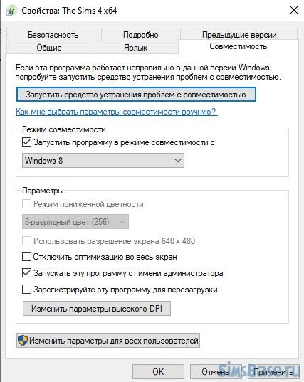 Способ 5: запустите The Sims 4 в режиме совместимости