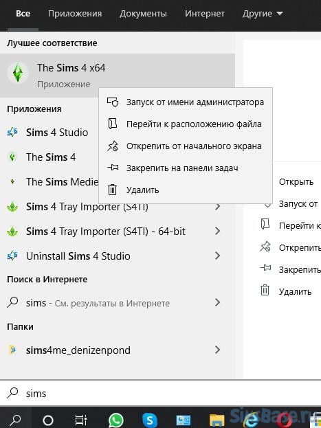 - Найдите The Sims 4 в поле поиска на рабочем столе и щелкните правой кнопкой мыши The Sims 4, чтобы выбрать «Перейти к расположению файла» .