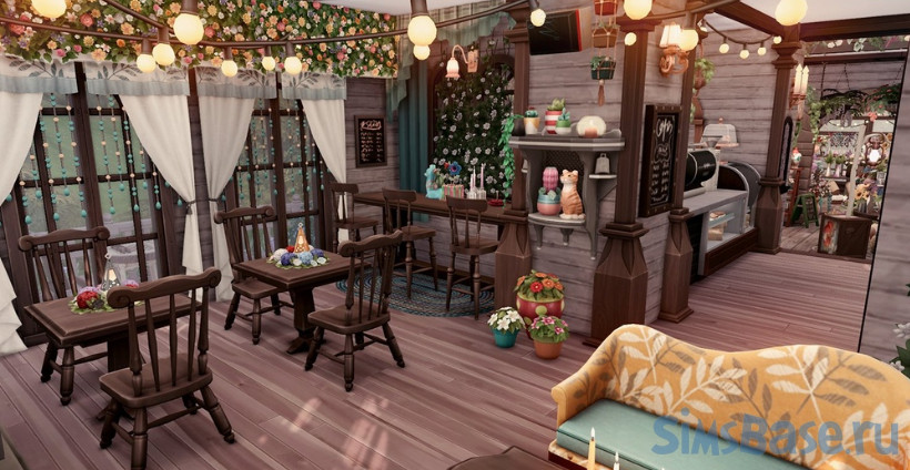 Небольшое, но уютное кафе порадует посетителей обилием цветов и растительности. Столики, барные стойки, веранды, гостиная для общения – всё, буквально, утопает в цветах. Кафе можно совместить с магазином цветов или магазином флориста. Это необычное здание с множеством декора, деревянной мебелью, спокойными оттенками в дизайне.