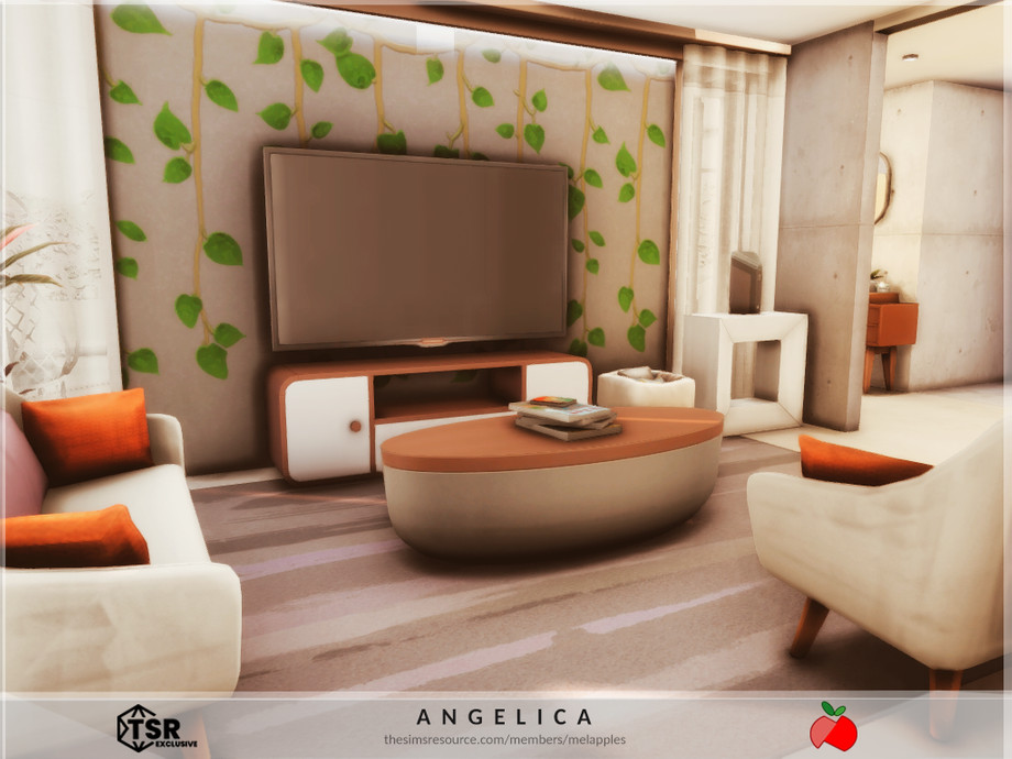 Чистый, светлый, современный интерьер в спокойных тонах — отличный вариант для семьи, молодых симов или творческих личностей. Скачивайте бесплатно и заселяйте своих симов в Angelica уже сегодня!