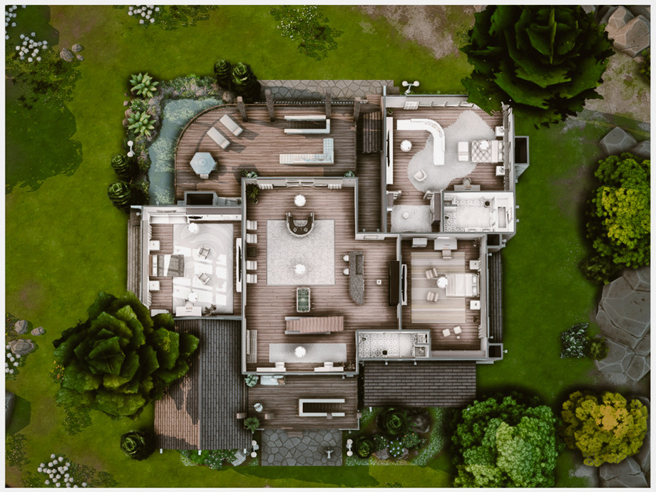 Представляем уютный и просторный семейный дом MM BridgeCreek House для The Sims 4! Этот великолепный трёхэтажный особняк на участке 30×30 идеально подойдёт для большой семьи или компании симов, которые ценят комфорт и современный стиль.