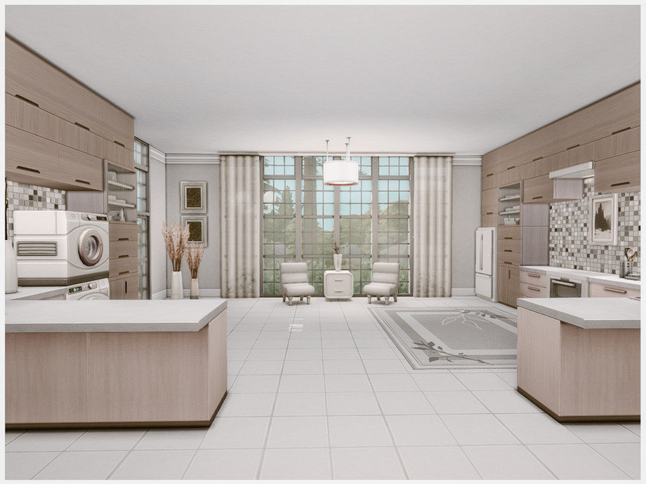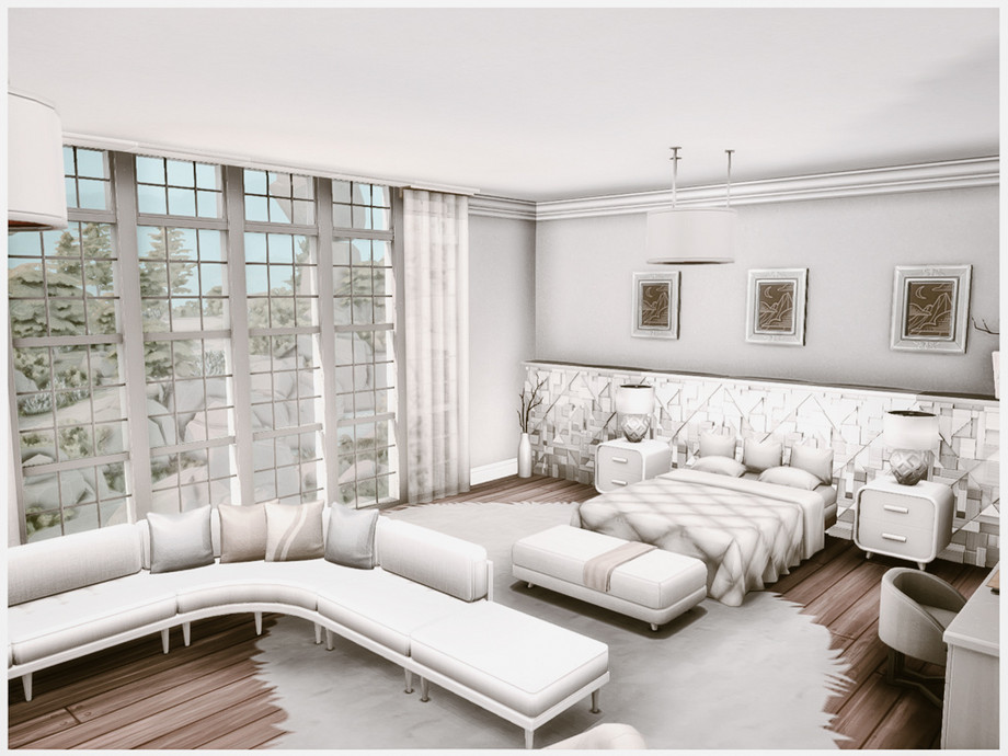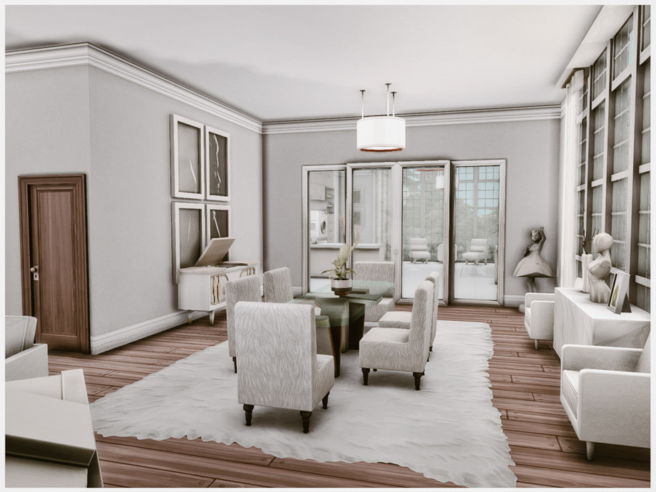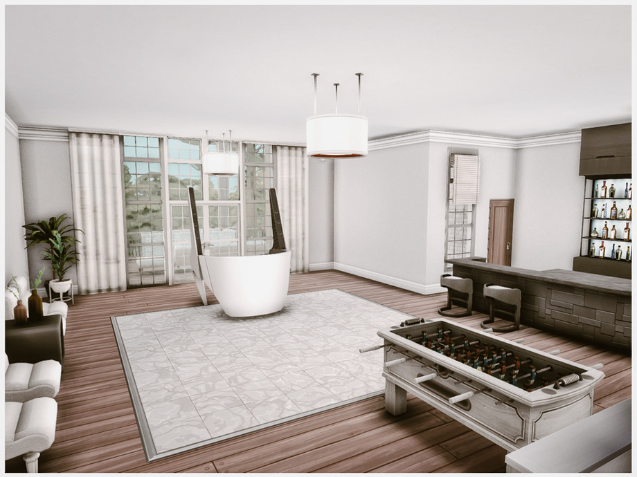 В доме целых 5 спален и 4 ванные комнаты — хватит места всем! Просторная гостиная плавно перетекает в кухню и столовую, создавая открытое и светлое пространство для семейных ужинов и вечеринок. На верхних этажах расположены уютные спальни с гардеробными и рабочими зонами, а также дополнительные комнаты для творчества или отдыха. Дом полностью меблирован, выполнен без единого кастомного контента (No CC!), поэтому скачать и установить его можно сразу.