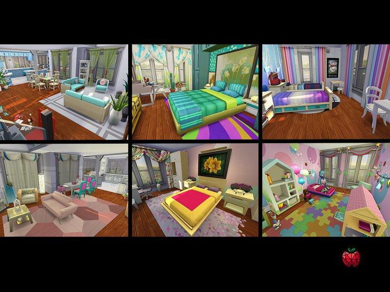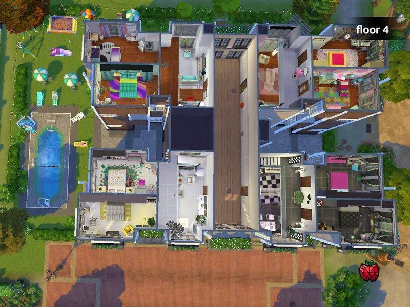 Многокомнатный дом, который может стать вариантом общежития или частным домом для большой семьи. Останется только запереть двери своей комнаты. Здесь есть и комнаты для малышей, и спальни (кровати при желании можно заметь на односпальные), кухни, ванные и всё необходимое для счастливой сим-жизни.
