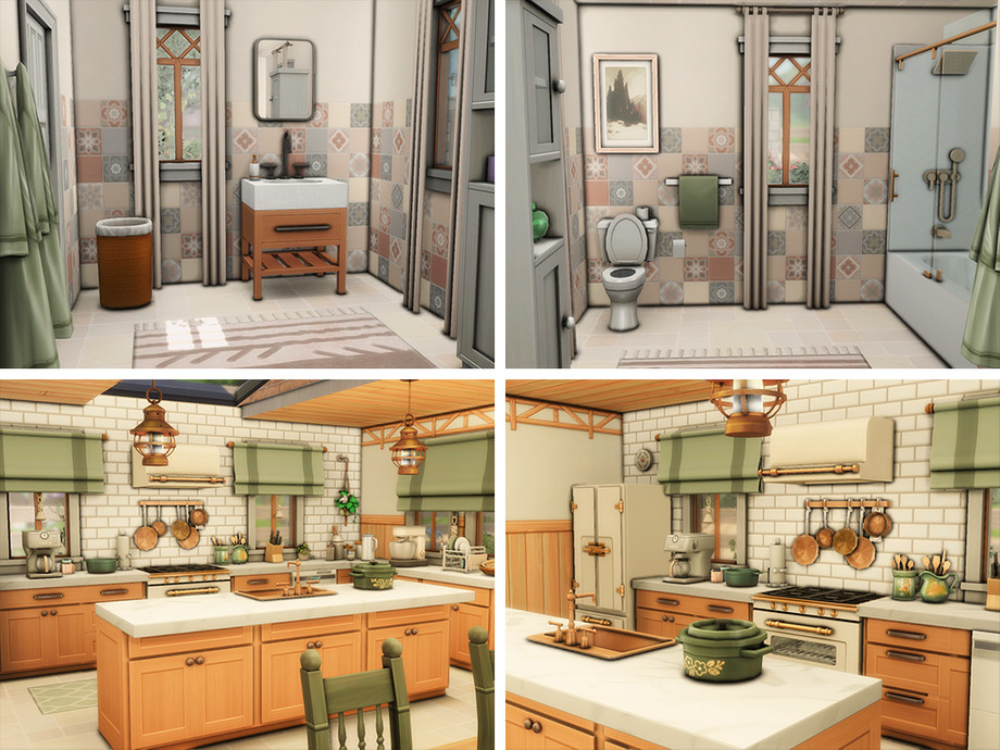 Милый farmhouse-стиль с теплой атмосферой, большими окнами и продуманным пространством для хобби, отдыха и семейных посиделок. Здесь хватит места всем: уютная гостиная для вечеров у камина, просторная кухня, где так приятно готовить, и спальни, в которых так сладко засыпать после долгого симс-дня.