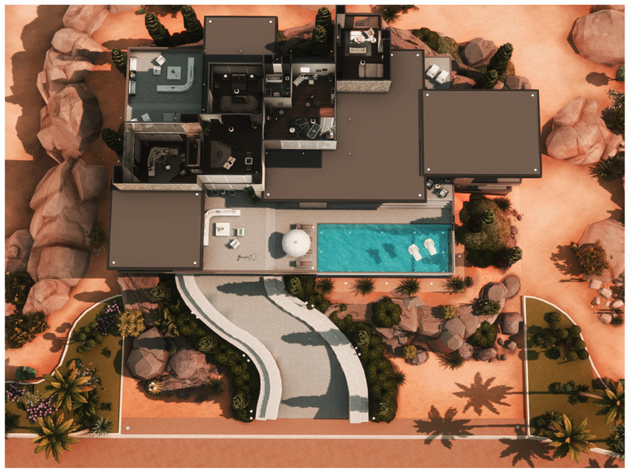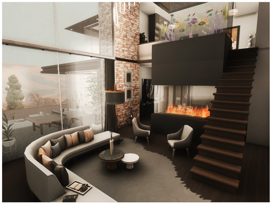 Дом полностью меблирован в современном стиле: дорогая техника, дизайнерская мебель, картины и декор премиум-класса. Есть бассейн, сауна, спортзал и даже лифт! Скачивайте и пусть ваши симы живут как миллиардеры!