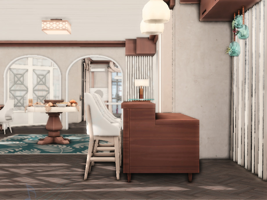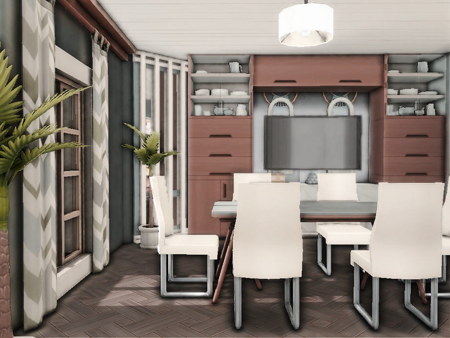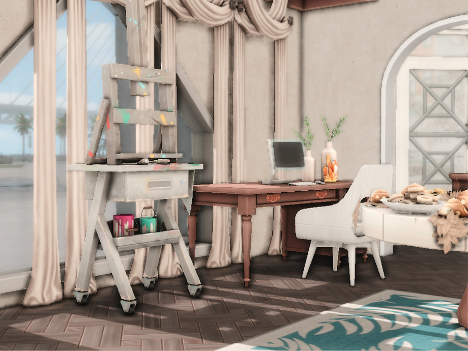 Лот требует активации читов bb.moveobjects on, bb.showhiddenobjects и bb.showliveeditobjects для точной установки, плюс T.O.O.L. мод. Он совместим с большинством дополнений: от Get to Work до Life & Death, включая геймпэки вроде Outdoor Retreat и стуфф-паки типа Tiny Living. Стиль — современный с нотками уюта: жёлтые акценты в отделке напоминают горчицу (mustard), тёплые тона, натуральные материалы.