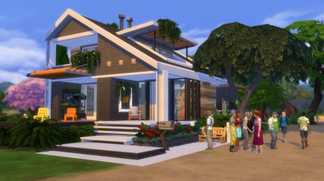 Небольшой современный коттедж в черном, коричневом и белом цветах с текстурами дерева и кирпича. Идеальный дом для одного сима или пары. Полностью меблирован. Включает в себя: гостиную, столовую, кухню, спальню, ванную комнату. Размер лота: 20×15.