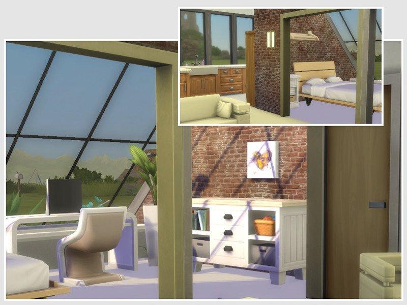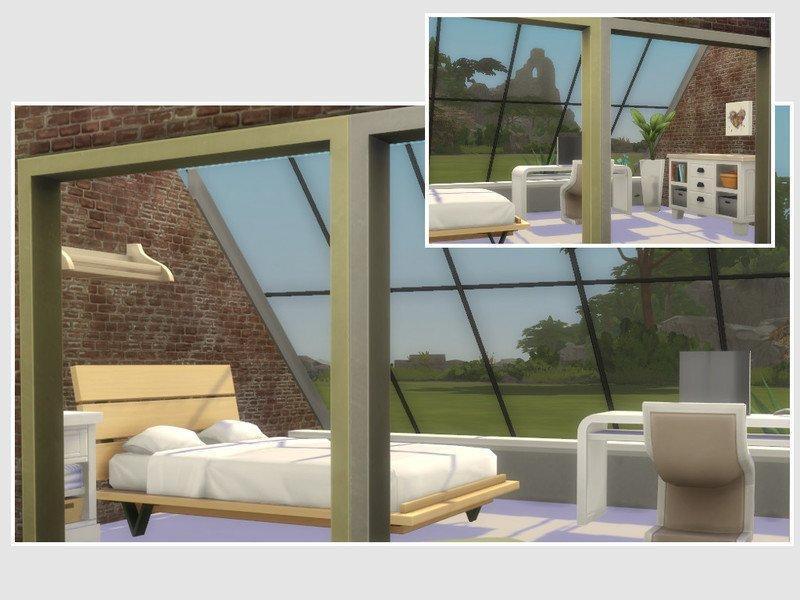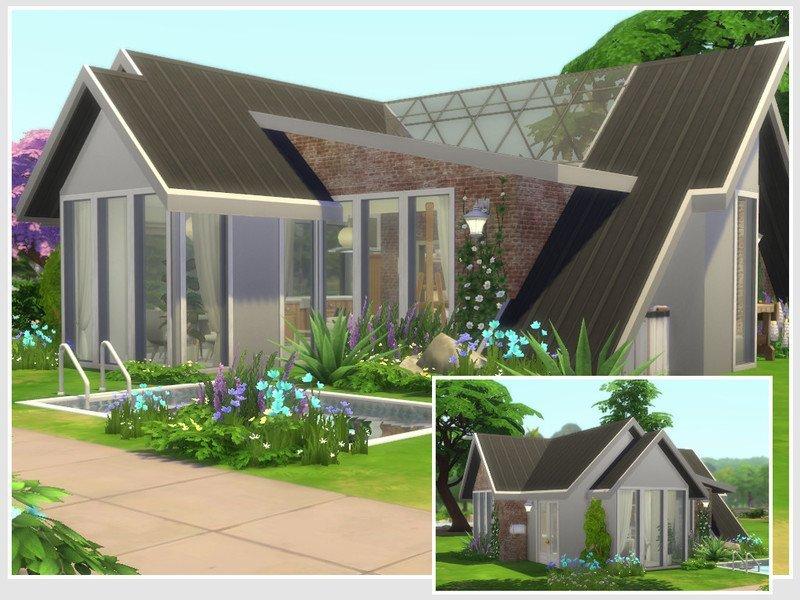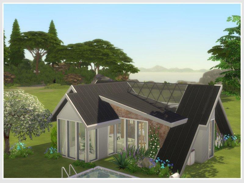 Недорогой маленький домик для одного персонажа или пары. Большая часть дома расположена под стеклянной крышей (для парника), в виду этого, ваши персонажи смогут любоваться звездным небом не выходя на улицу. За домом расположен небольшой бассейн среди ярких цветов.