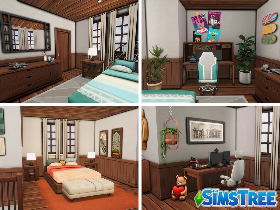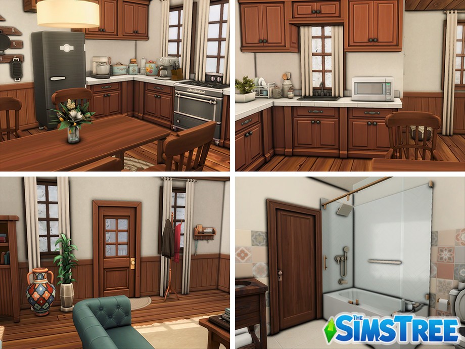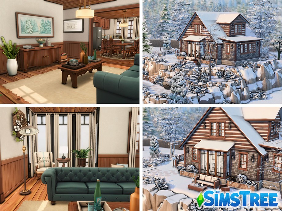 Дом полностью меблирован и готов к заселению: два этажа наполнены теплыми тонами дерева, мягким освещением и уютной мебелью, которая создает атмосферу настоящего горного убежища. На первом этаже — просторная гостиная с камином, кухня для семейных ужинов и ванная комната. Наверху — спальня с видом на реку, где можно просыпаться под щебет птиц. Общая стоимость в игре — 66 952 симбакена, что делает его доступным для любого бюджета.