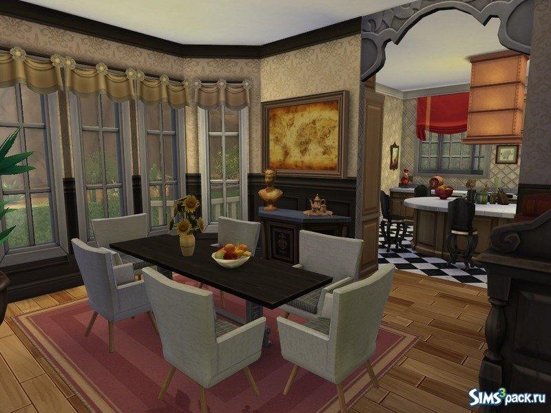 Огромный, роскошный трехэтажный особняк, выполненный в стилистике американского классицизма. Преобладающий цвет в декоре – природный коричневый. Три спальни, богато обставленные, две ванные комнаты. Для участков 30Х20 «клеток», ценник – 166 649 симолеонов.