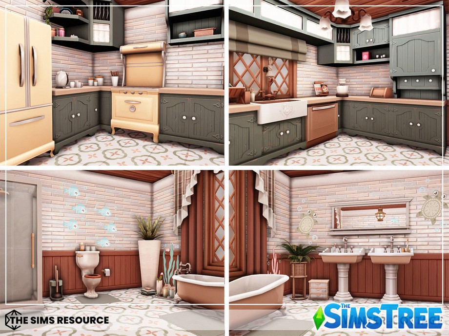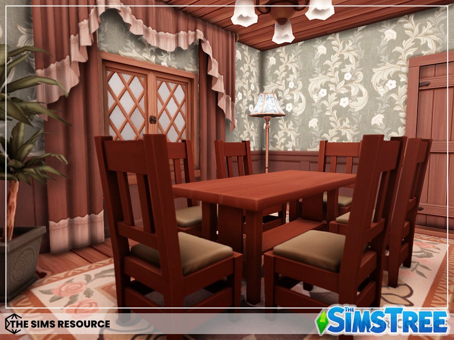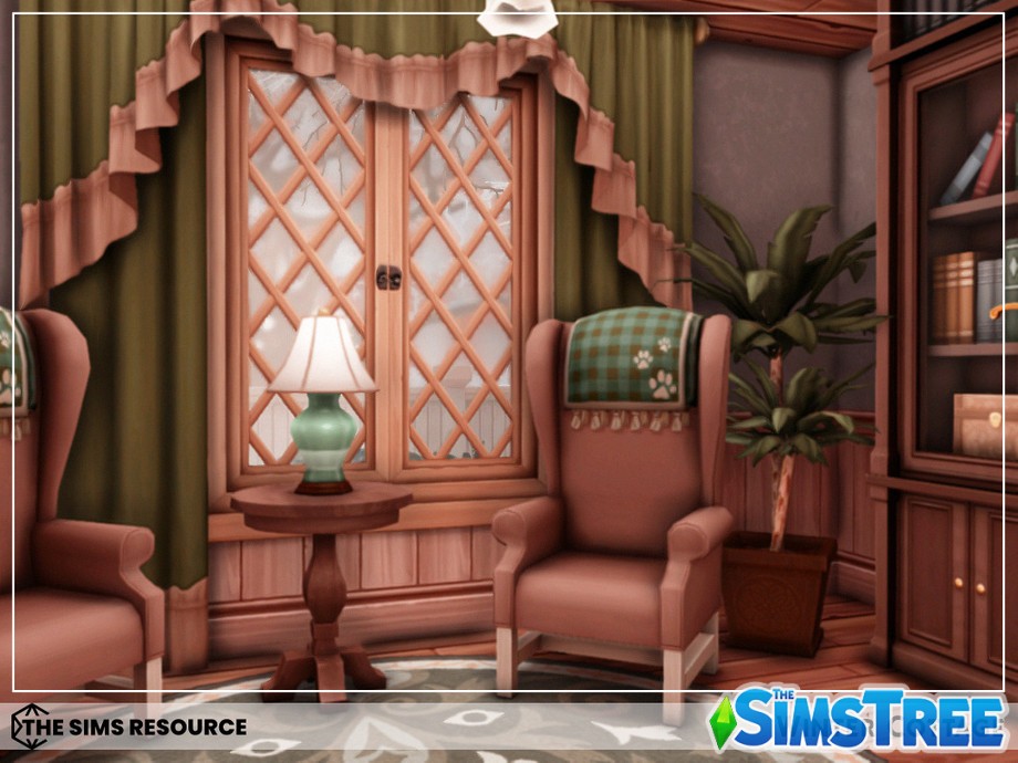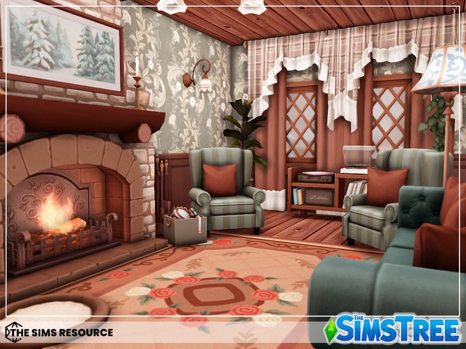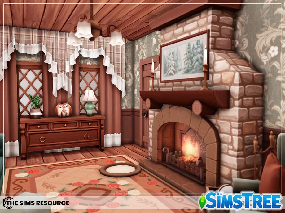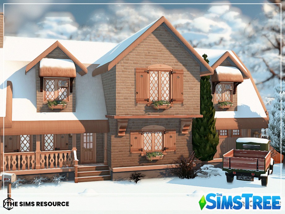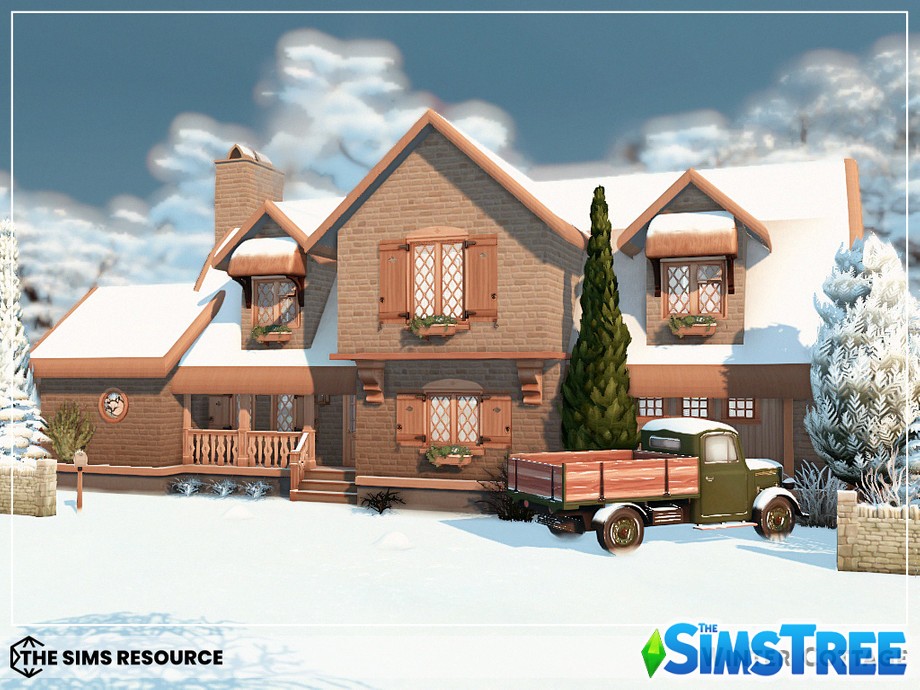 Войдите в дом через теплую веранду, где потрескивает камин, а на полках расставлены гирлянды и свечи. Гостиная — сердце дома: мягкий диван у окна с видом на заснеженные холмы, книжные полки и столик с горячим чаем. Кухня в деревенском стиле с деревянными шкафами, где ваши симы будут печь пироги с корицей. Спальни upstairs — настоящие гнездышки: главная с большой кроватью и пледом, детские — с игрушками и постерами. Ванная с чугунной ванной для расслабляющих ванн под снегом за окном.