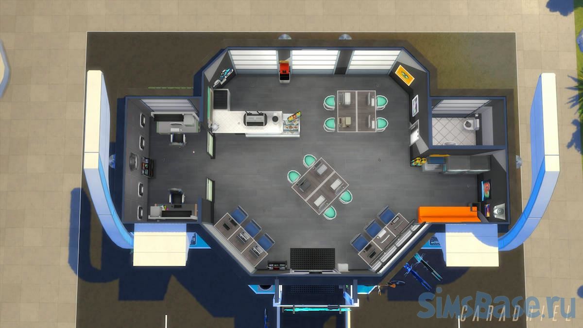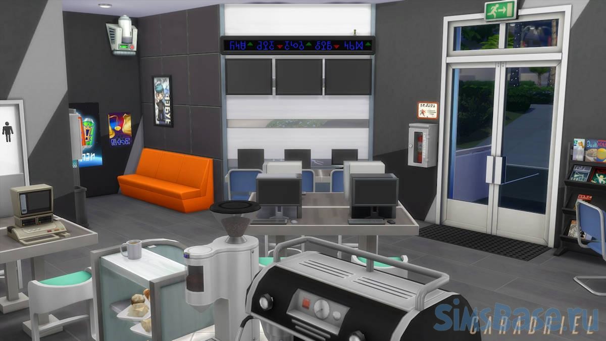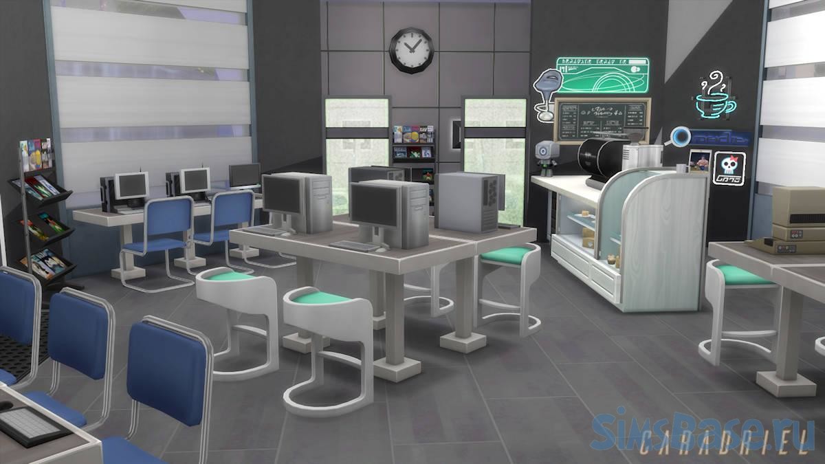 Самое обычное интернет-кафе, в котором симы могут посидеть за РС или за столиками, перекупить, выпить напитки, пообщаться. Футуристический антураж прилагается.