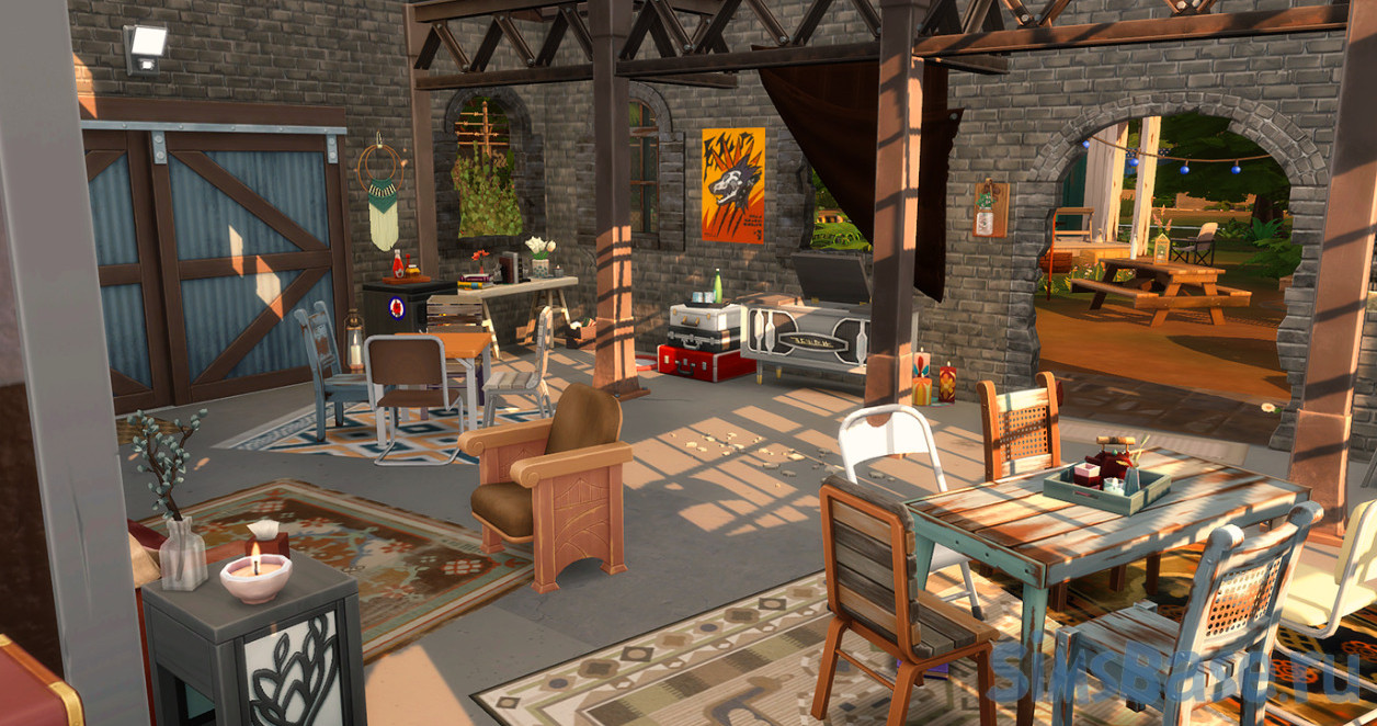 Одной из вещей, которые автору не понравились в оригинальном баре Мунвуд Милл расширения Оборотни, была нехватка внутреннего пространства, что может быть немного проблематично, если есть расширение времена года и если вы хотите укрыться от дождя. Так что автор построил этот большой склад, с большим количеством места!