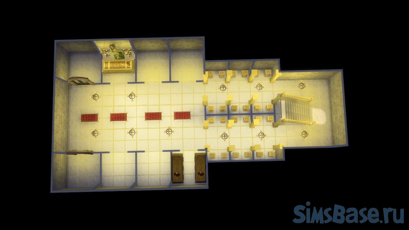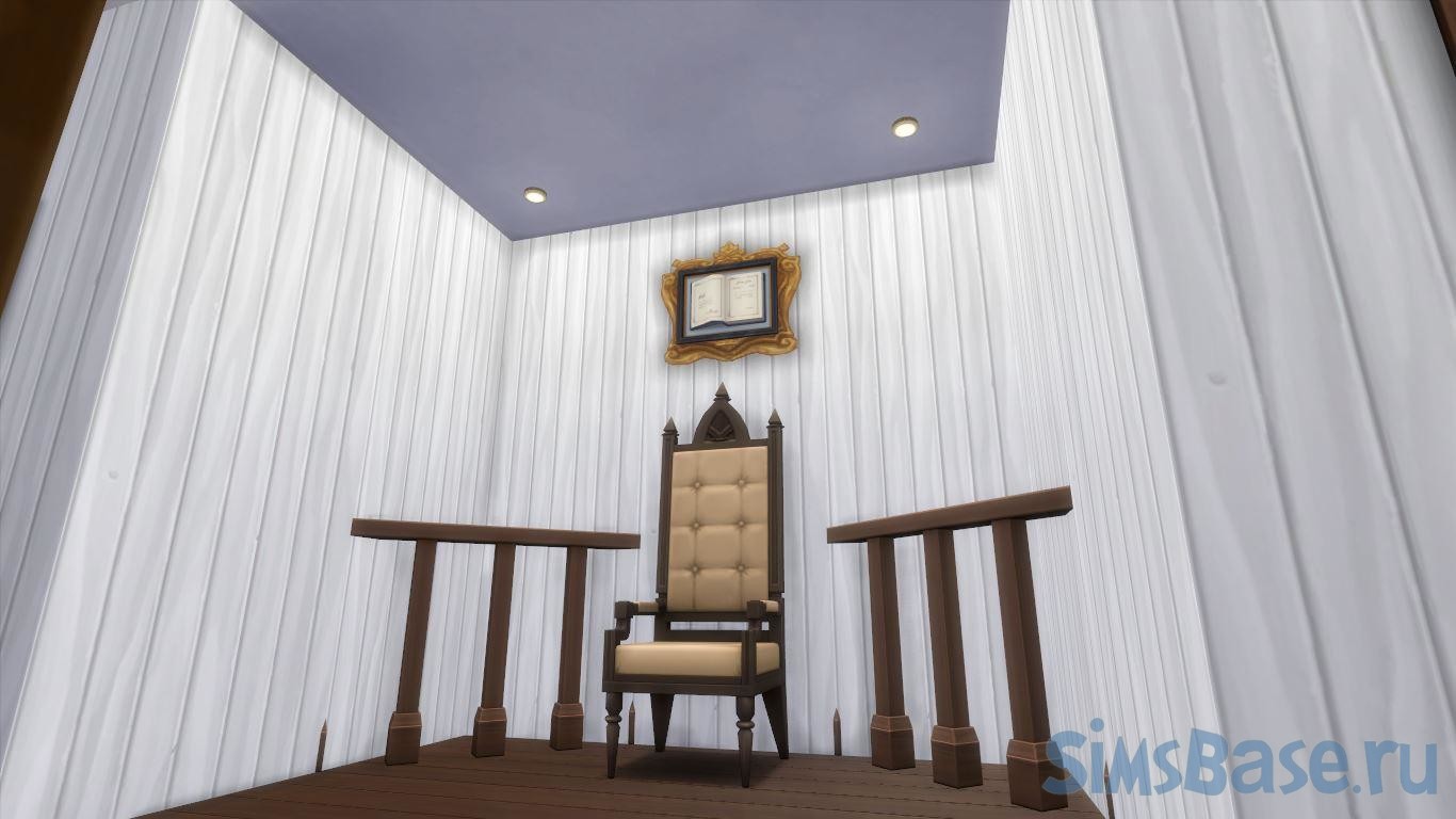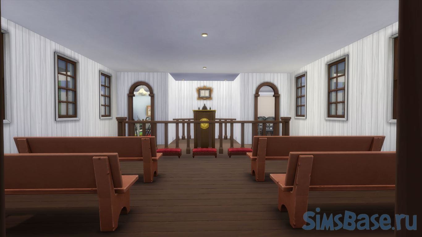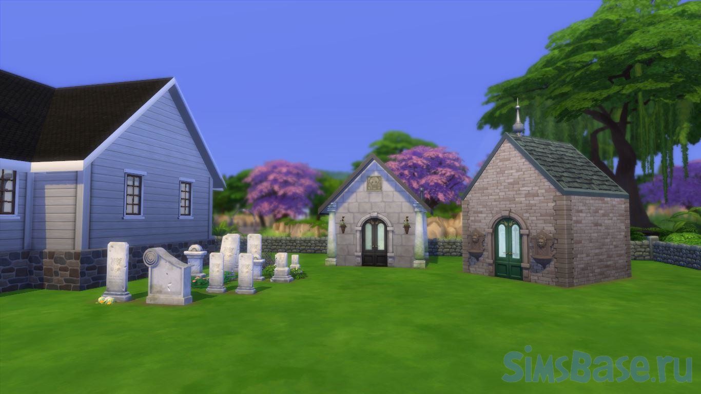 Скромная по меблировке церковь и кладбище рядом – то, что частенько требуется для полноценной игры, прохождения челленджей, отыгрыша династий. На поверхности достаточно места для постройки большого кладбища, когда будут уходить в мир иной ваши симы, будь то естественные причины или … определенные модификации. Цокольный этаж служит мавзолеем для пар или семей. Внутри церкви можно проводить тематические встречи клуба, добавить арку и устраивать венчанья.