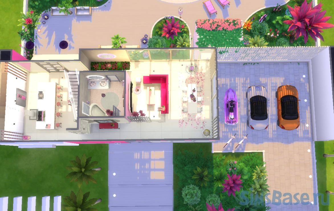 Дом Барби в классическом стиле и немного в современной обработке. Полностью в розово-бежевых тонах, с бассейном, машинами, множеством комнат и собственным фитнес-залом. Если вы отыгрываете нечто похожее на Барби – дом вам точно понравится, впрочем, его и перекрасить не сложно.
