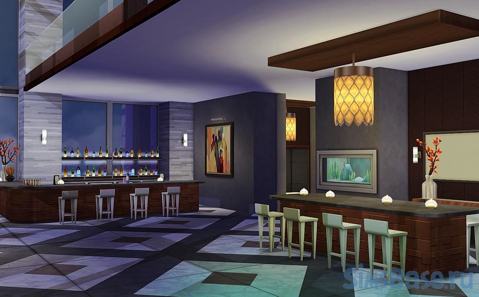 Вашим симам понравится встречать Новый год или проводить иные праздники и события в этом шикарном ночном клубе, оформленном в стиле Таймс-сквер. Есть барные стоки, столики на двоих, танцевальная зона.